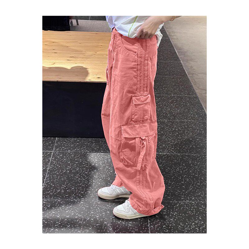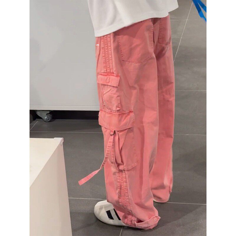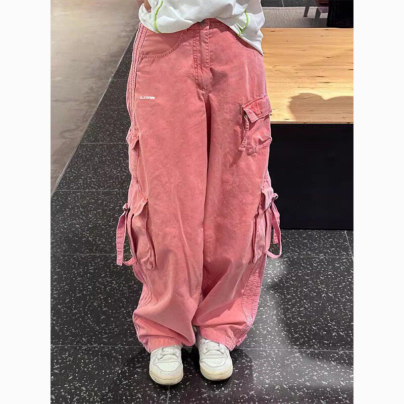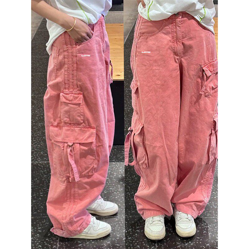 粉色工装牛仔裤女款夏季新款美式小个子超好看多巴胺裤子