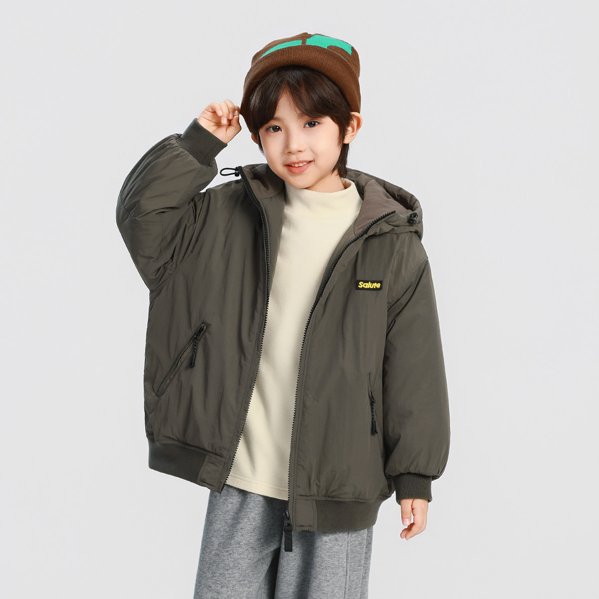 男童冬装外套2026新款儿童秋冬帅气冲锋衣男孩夹棉上衣加厚棉服潮