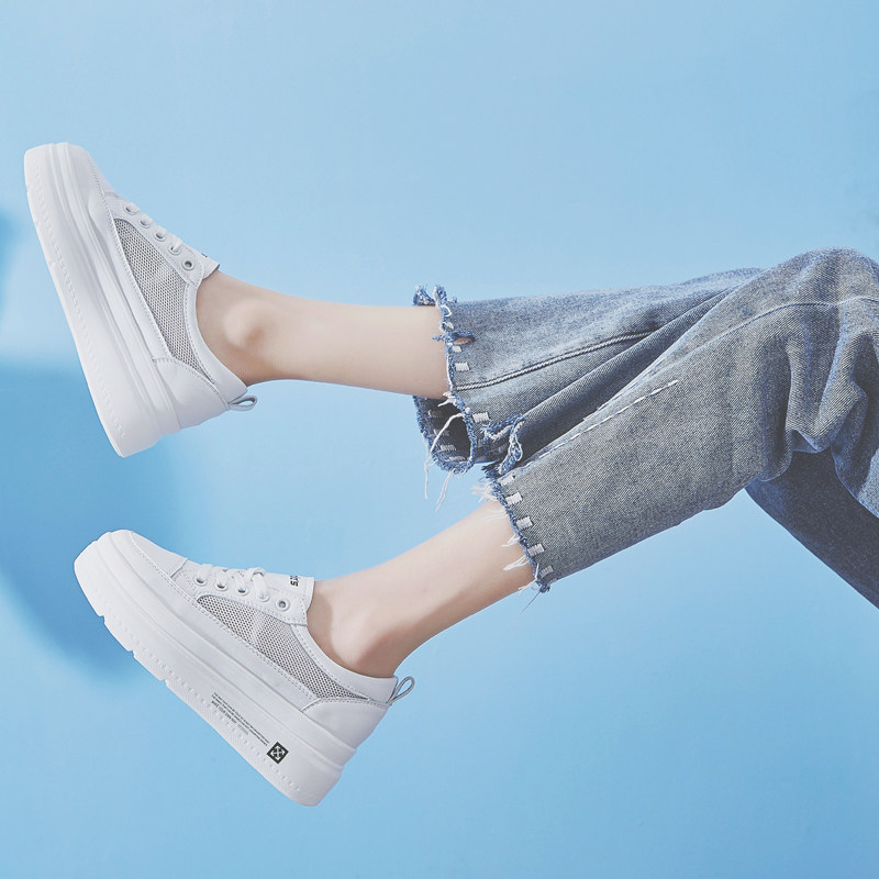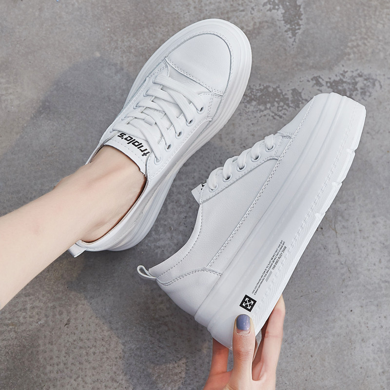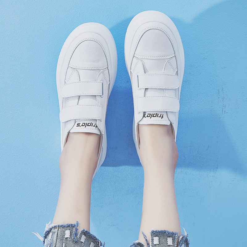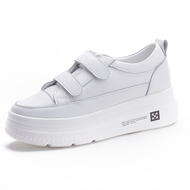 6cm厚底松糕鞋魔术贴内增高小白鞋女真皮2021春款百搭坡跟休闲鞋