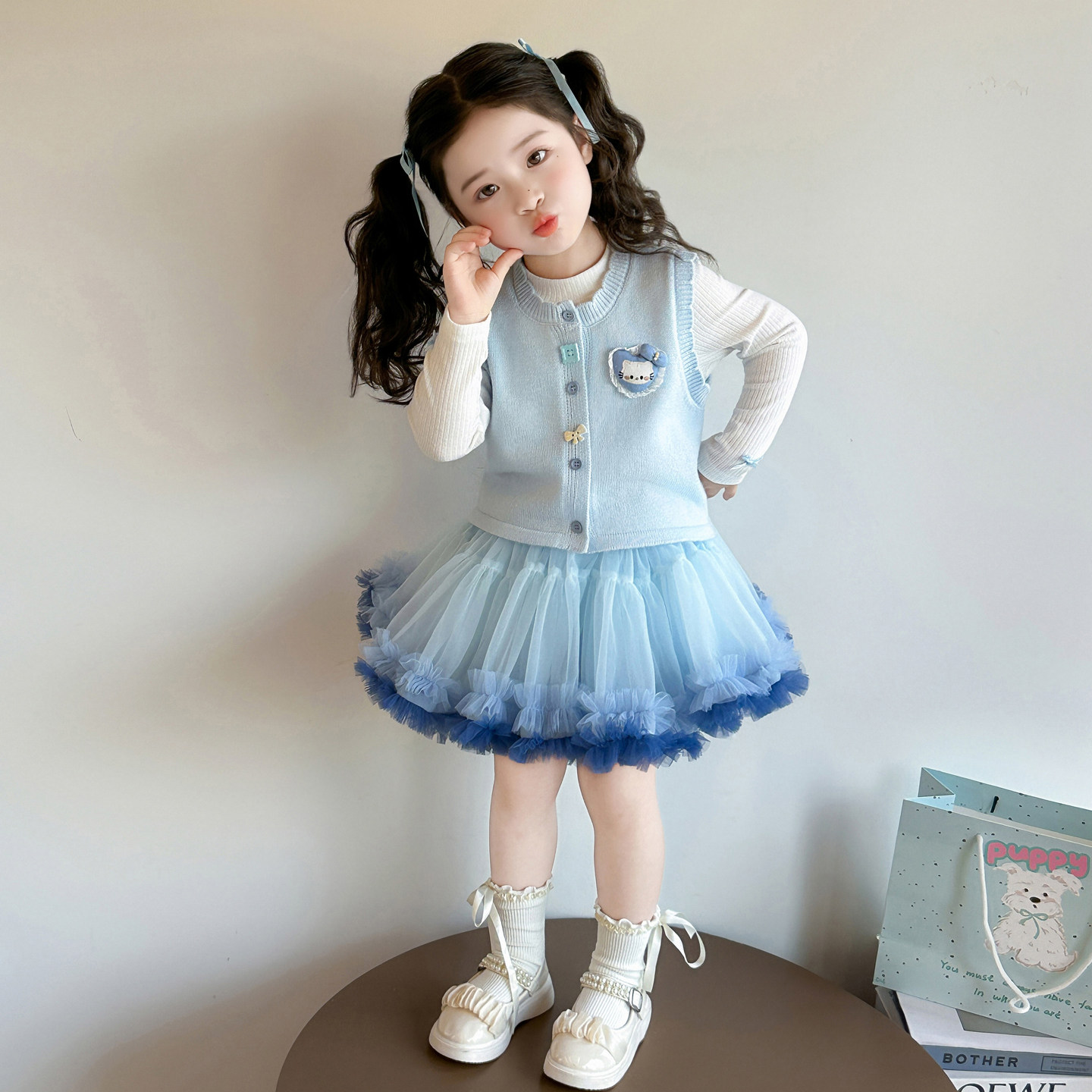女童春秋款tutu裙子套装2026新款洋气时髦儿童女宝宝春季春装猫咪