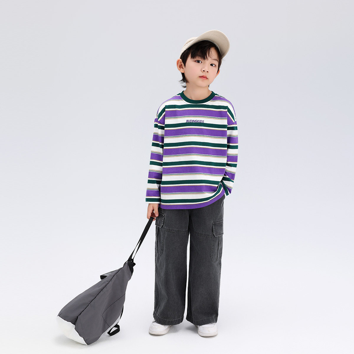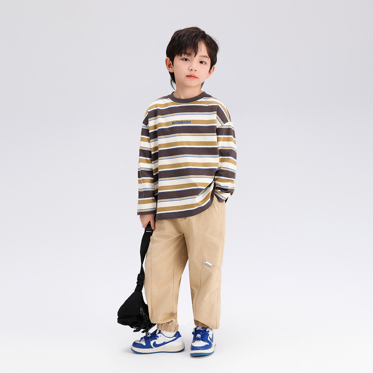 沫沫家定制童装男童儿童上衣打底衫洋气长袖条纹休闲内搭t恤