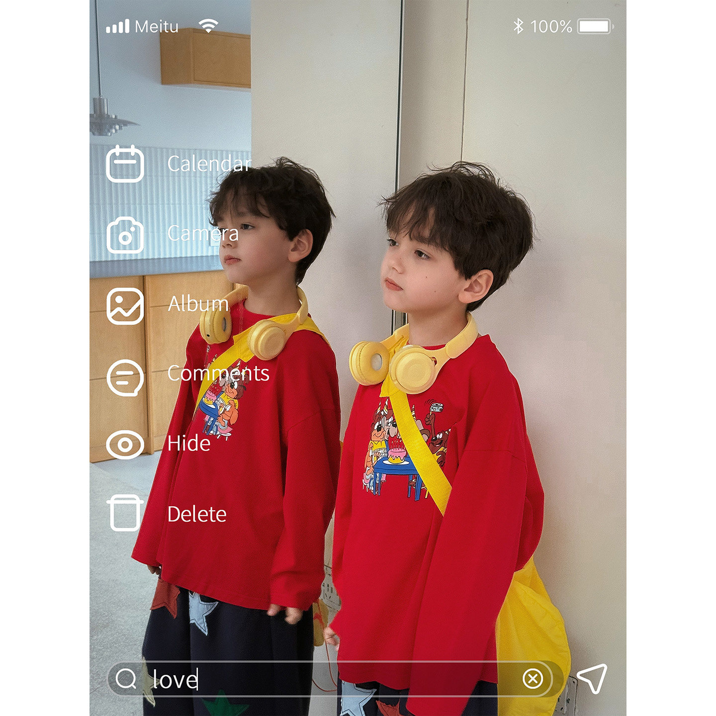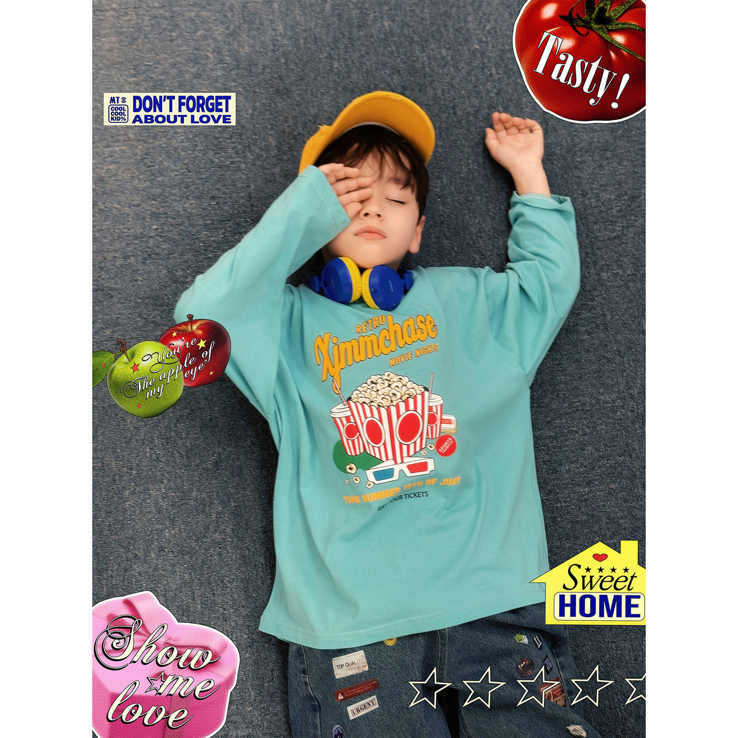 虾酱麻麻男童长袖t恤春装2026新款男孩洋气卡通儿童纯棉打底上衣