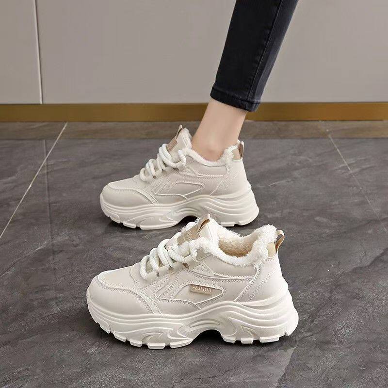 加绒女鞋冬季2025新款老爹鞋厚底增高小白潮鞋爆款运动休闲二棉鞋