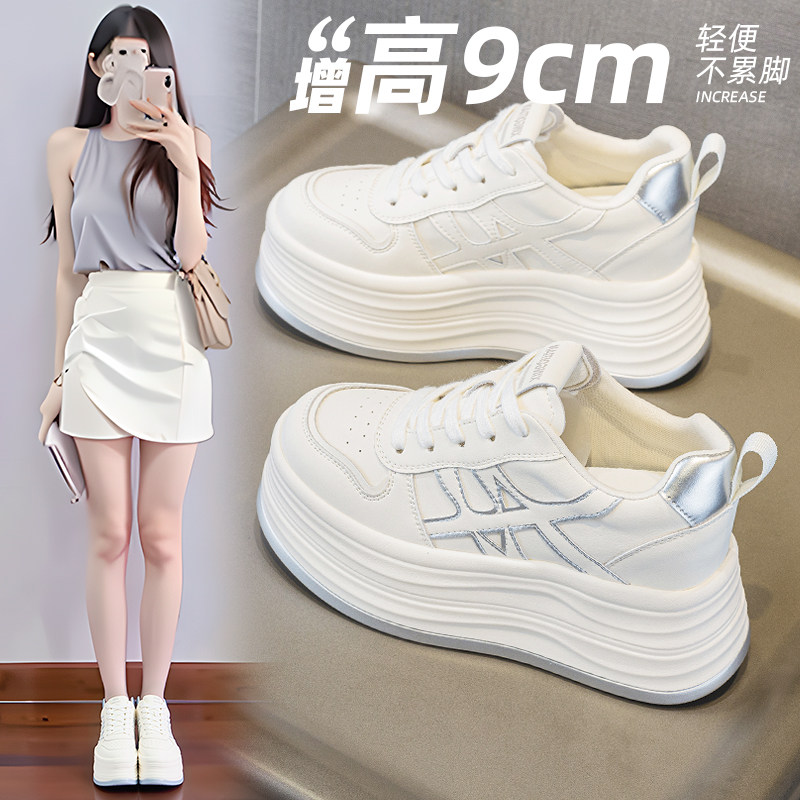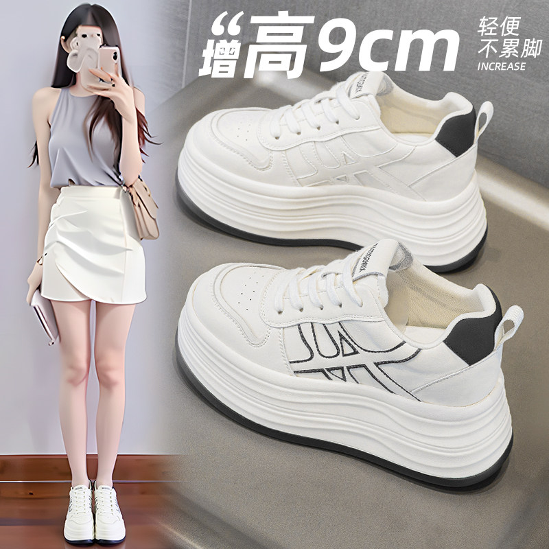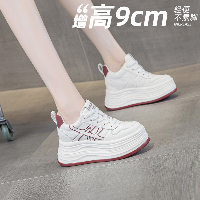 休闲风小白鞋女2025冬季新款厚底内增高9cm厚底加绒运动鞋女鞋潮