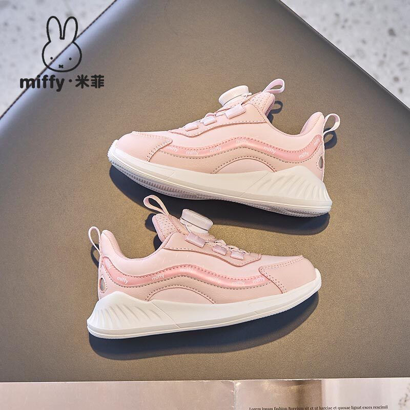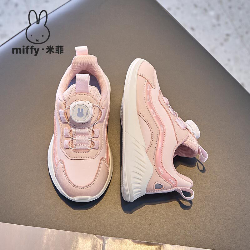 Miffy米菲童鞋春秋女童防滑防水革面旋钮扣休闲运动鞋缓震跑步鞋