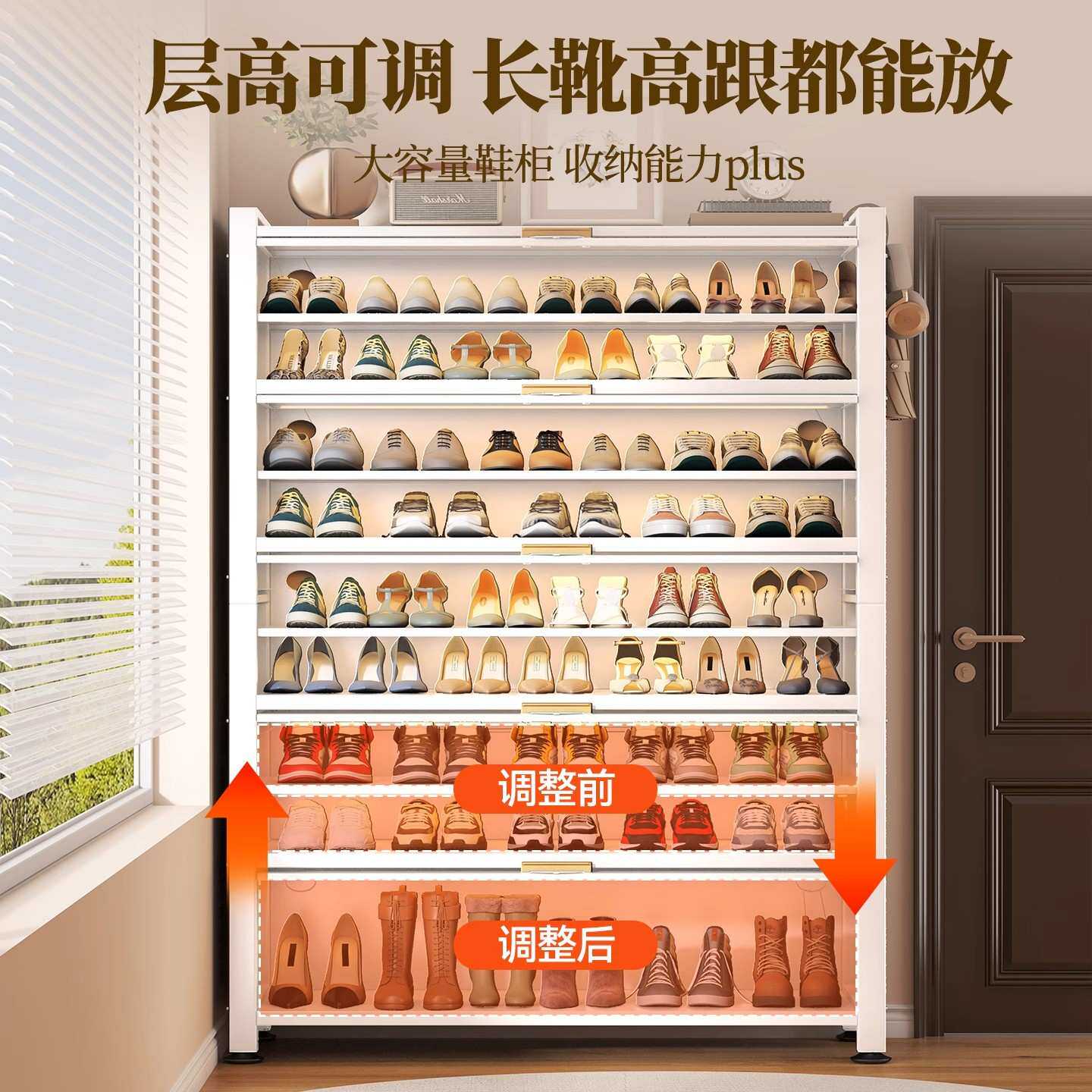 藤编鞋柜家用门口多层透气大容量金属鞋架一体靠墙钢制铁皮收纳柜