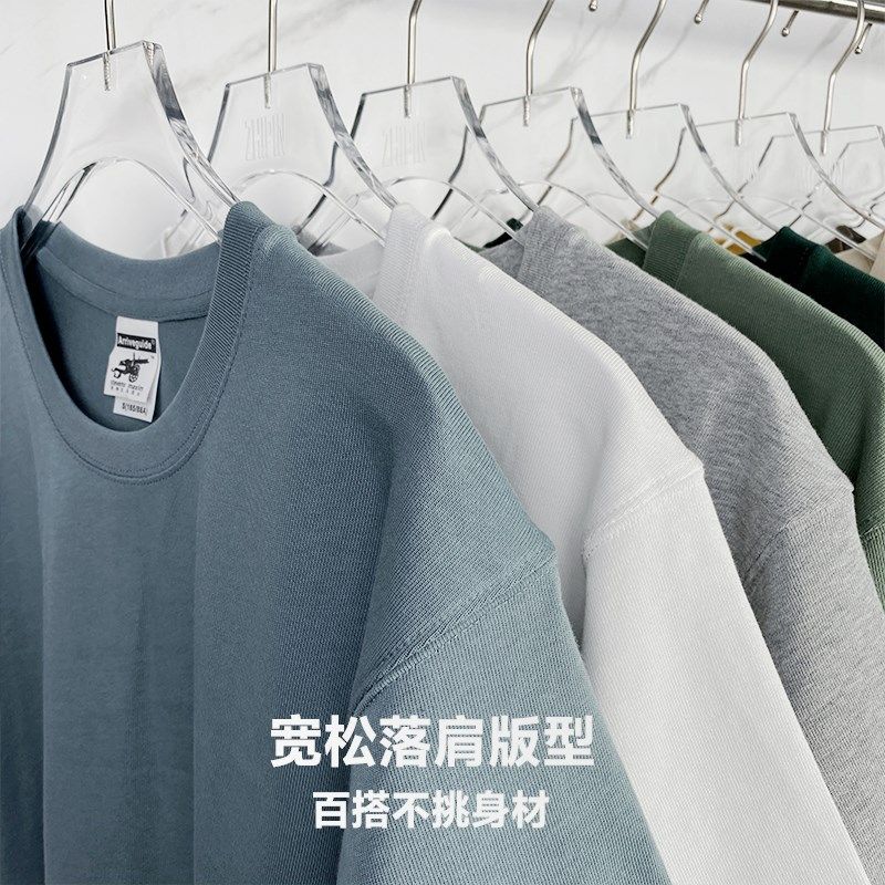 280g重磅纯棉莫兰迪色T恤定制工作服刺绣印logo班服定做DIY短袖男