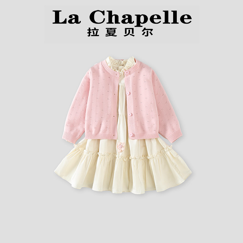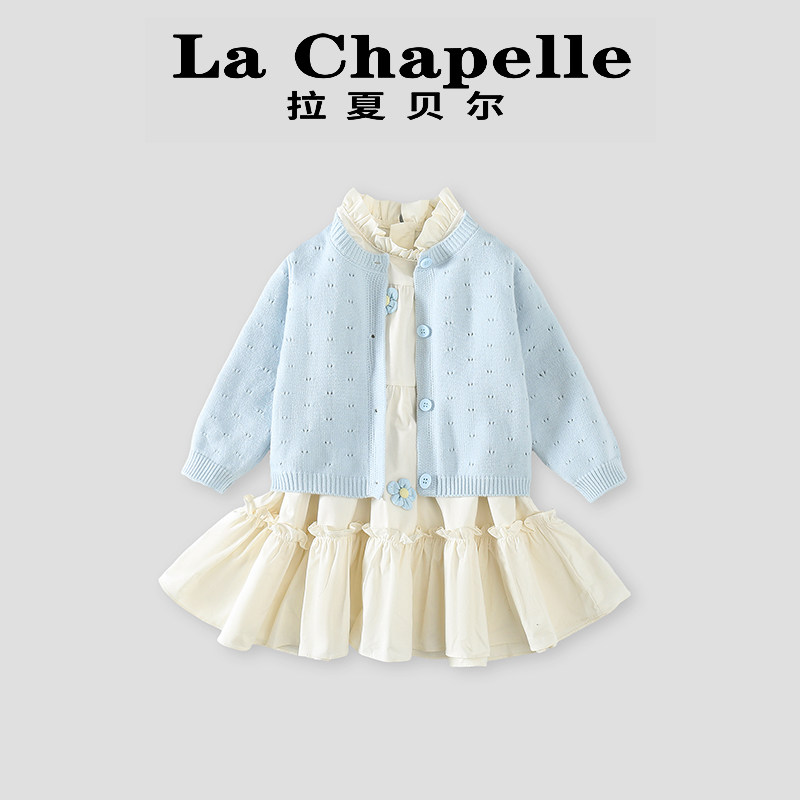 拉夏贝尔女童连衣裙洋气春夏新款公主裙儿童裙子高级感春装两件套