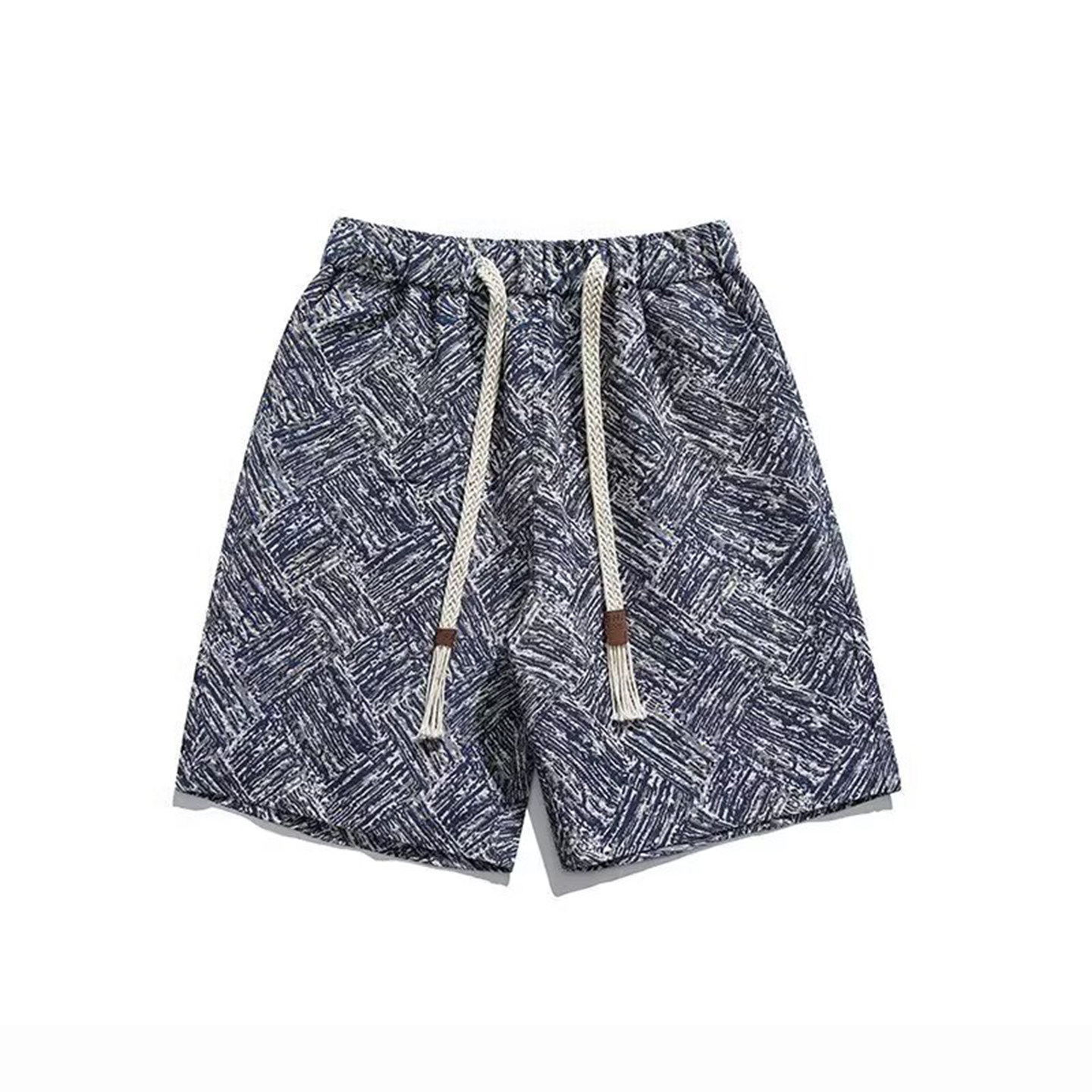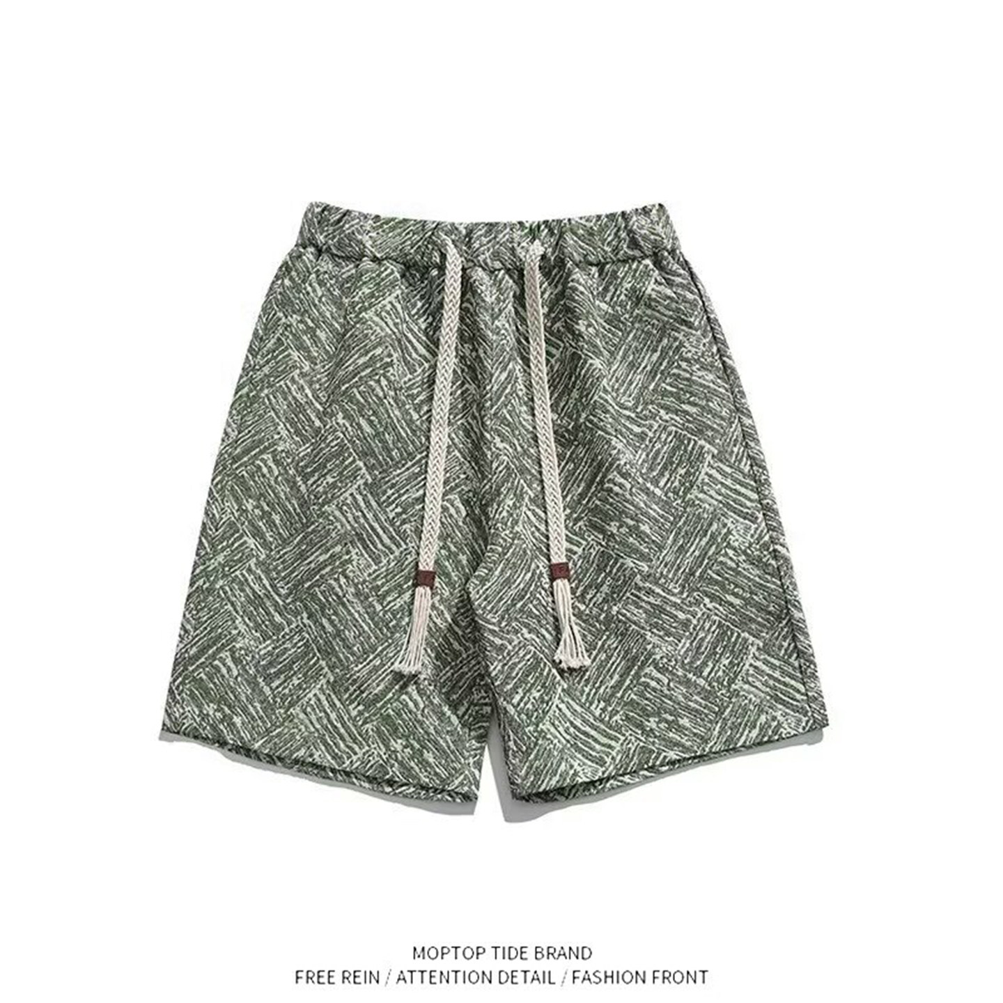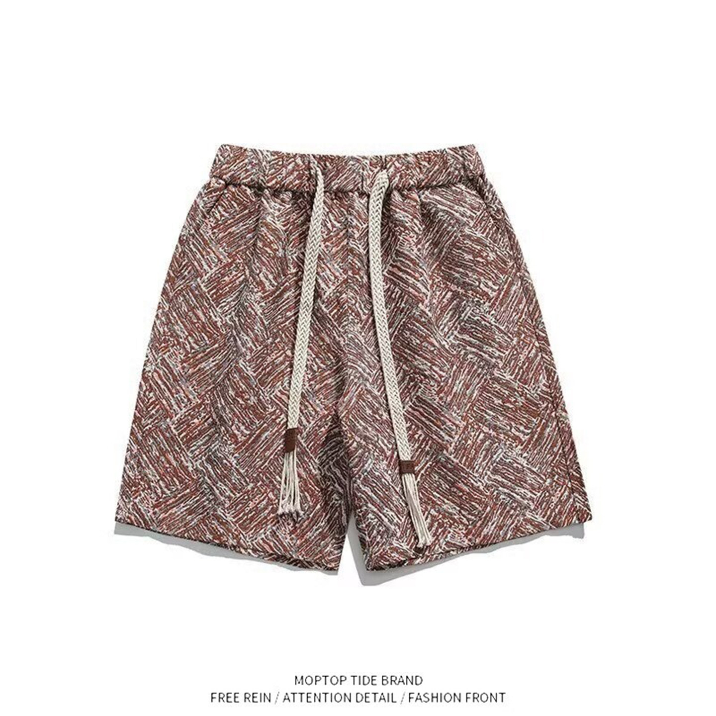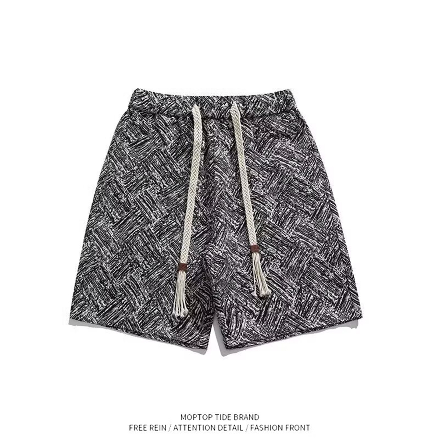 新款潮牌五分裤男夏季高级感提花短裤男款宽松沙滩休闲裤气质文艺