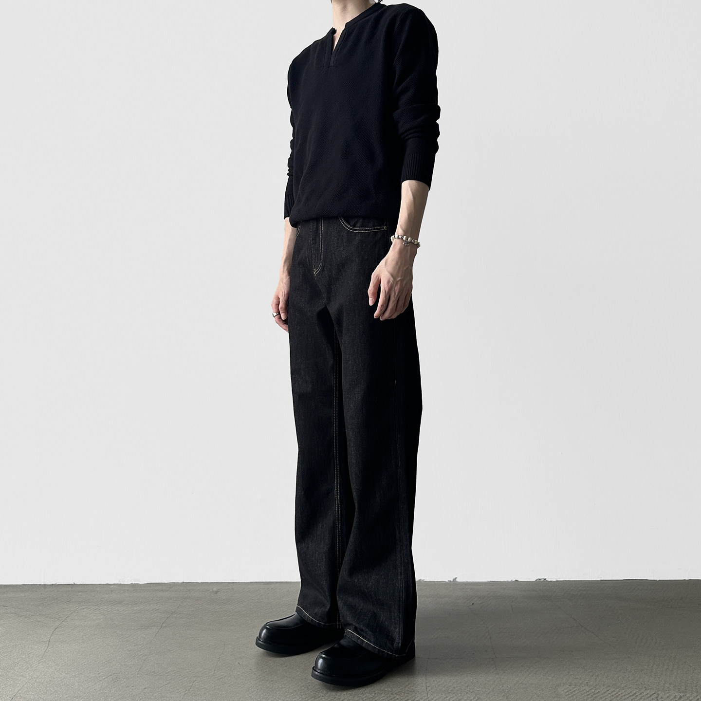 A6 studio不掉色原牛宽松直筒牛仔裤男2026新款休闲通勤A字阔腿裤