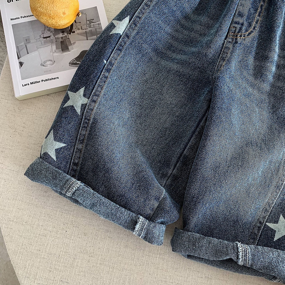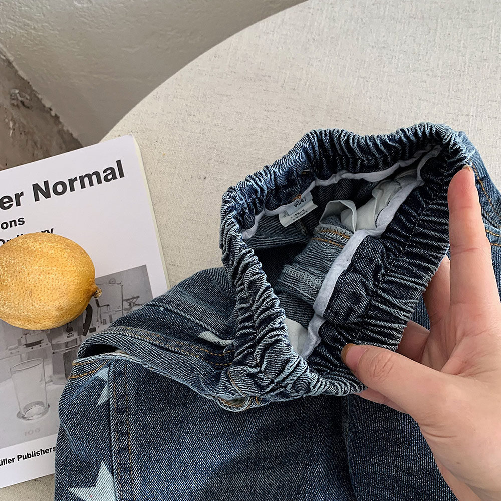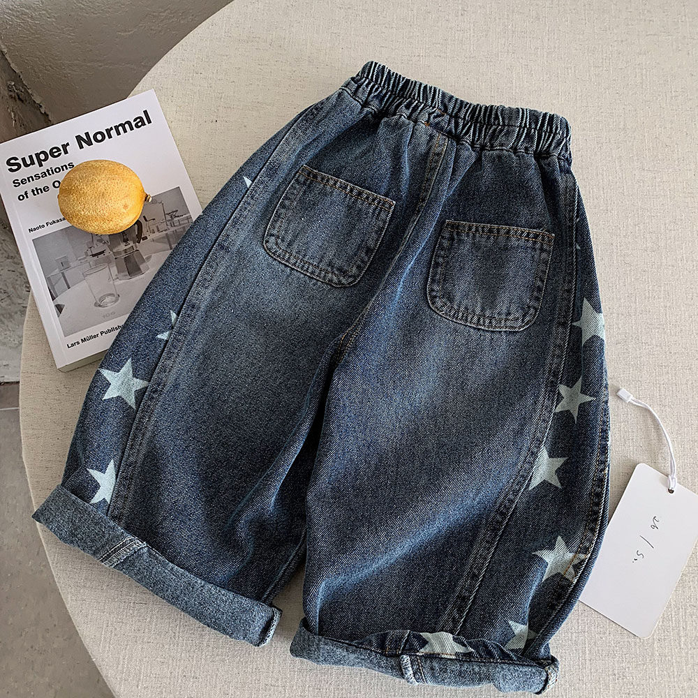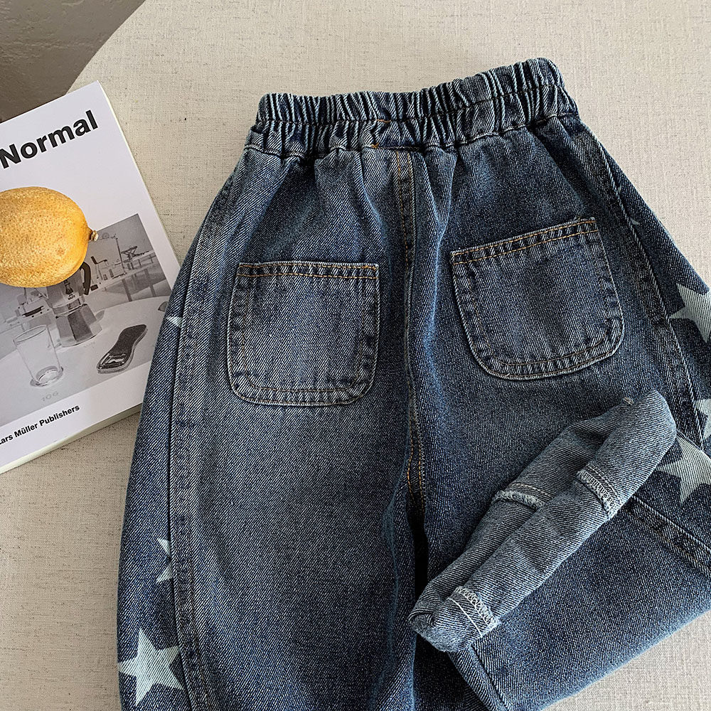 儿童软牛仔裤男春季2026新款小童星星直筒长裤潮宝宝阔腿裤女洋气