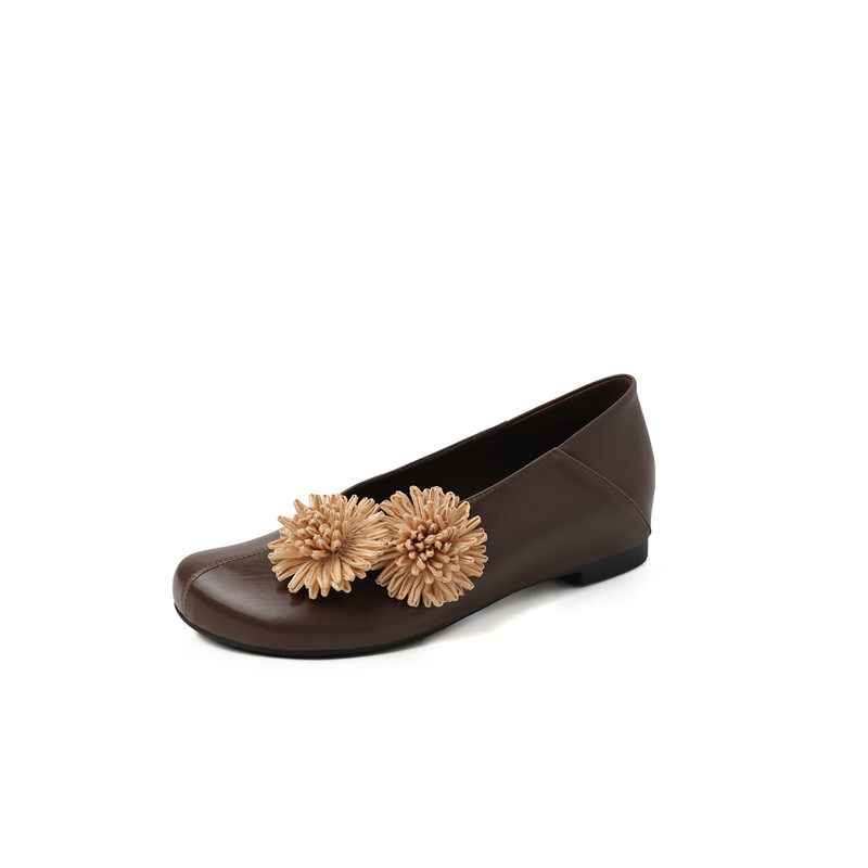 3.5cm内增高芭蕾舞平底鞋低跟圆头玛丽珍鞋真皮浅口花朵懒人单鞋