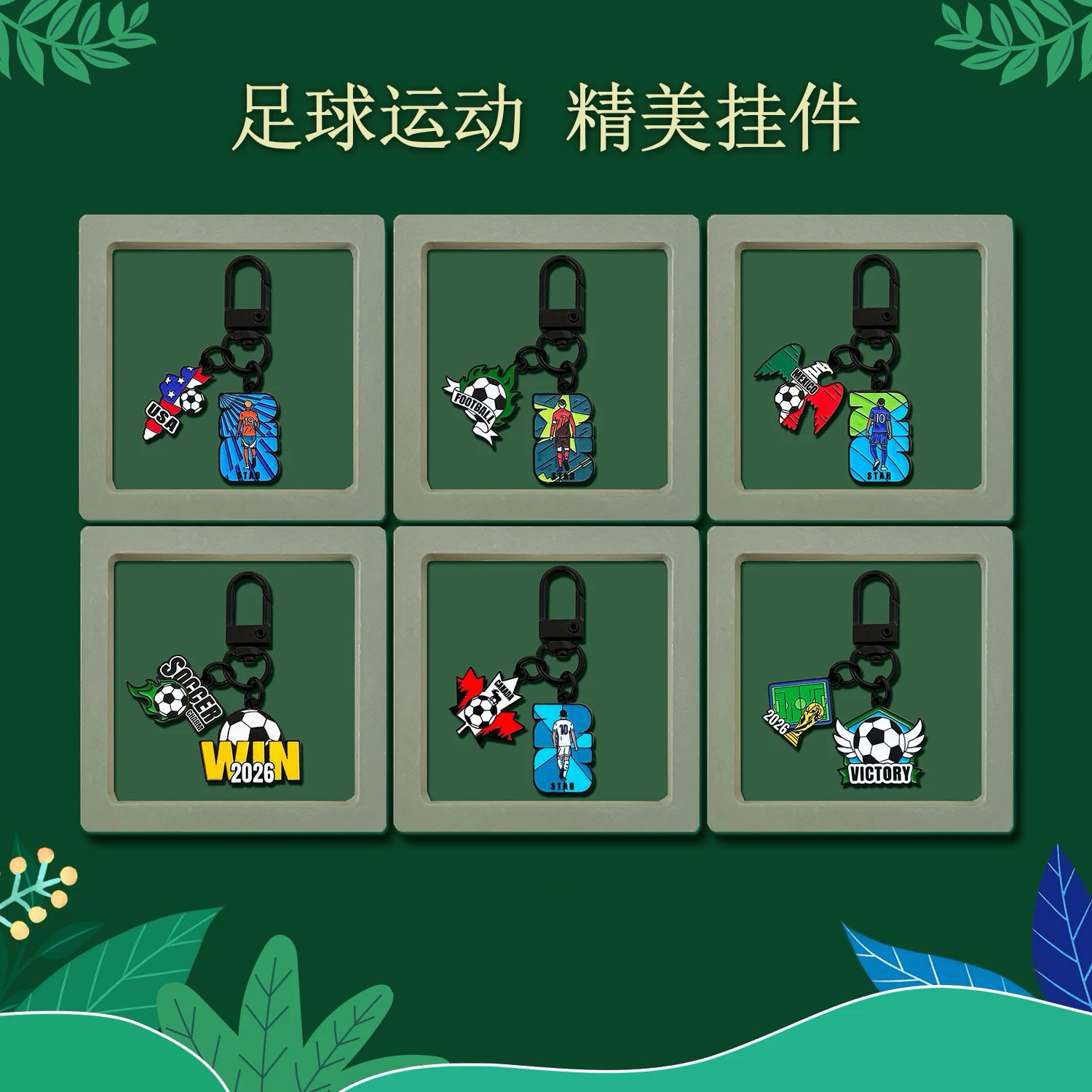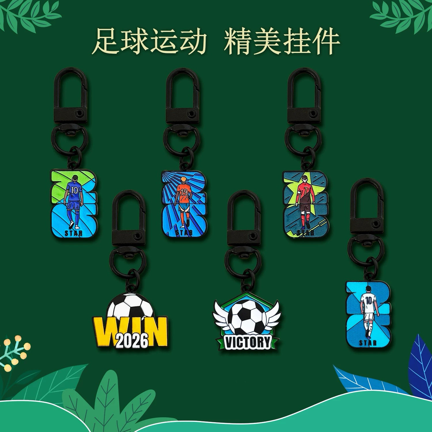 世界杯足球运动钥匙扣卡通造型金属挂件学生包包活动小礼品礼物