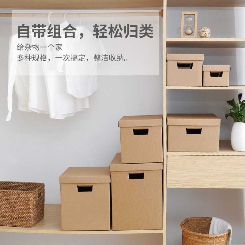 文件箱纸质超硬装书牛皮纸收纳箱有盖搬家整理箱纸盒零食储物箱子