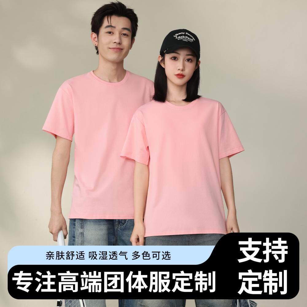 纯棉圆领短袖T恤工作服班服定制公司团建广告文化衫logo印字刺绣