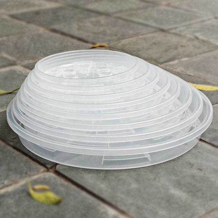 创意透气树脂花托底盘透明带凹槽垫脚托盘圆形方形六边形花盆通用