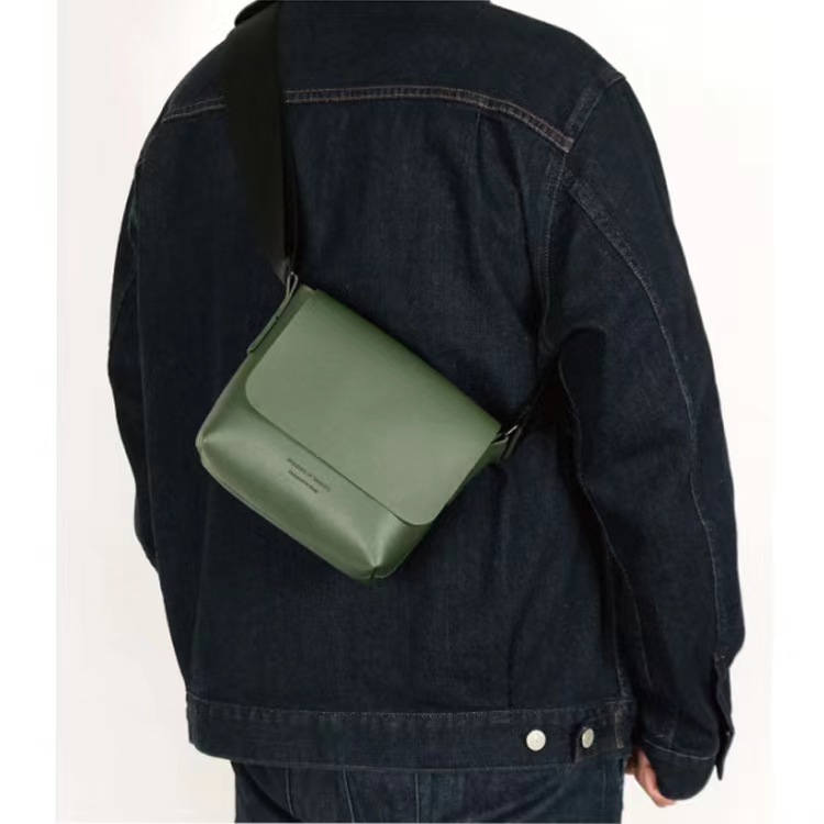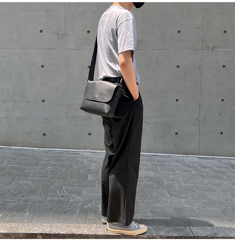百搭日韩风男士通勤休闲包简约大容量单肩斜挎包宽肩带皮质邮差包