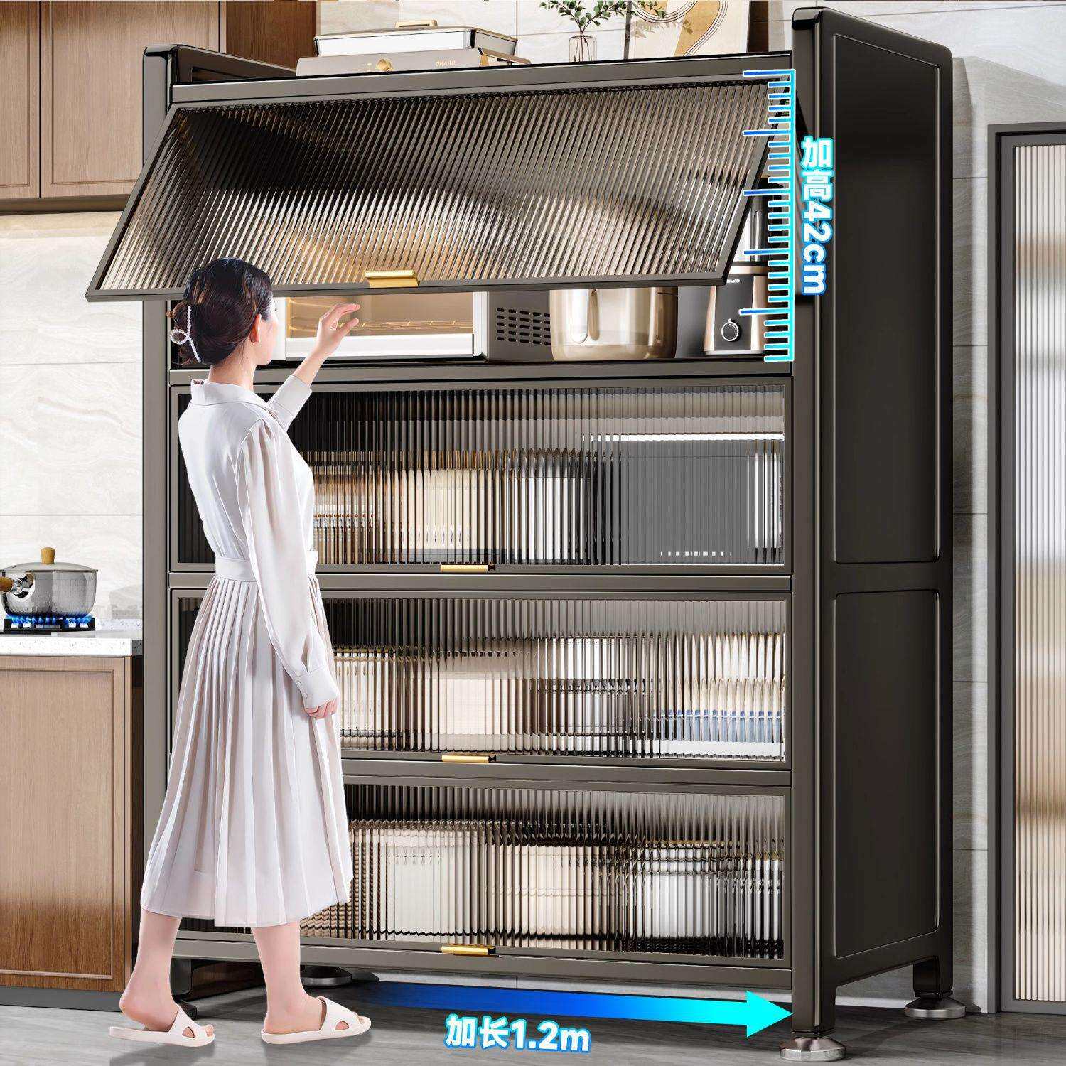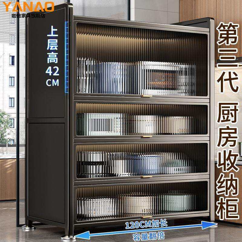 1米2厨房置物架落地多层收纳柜子家用多功能餐边柜橱柜加高储物柜