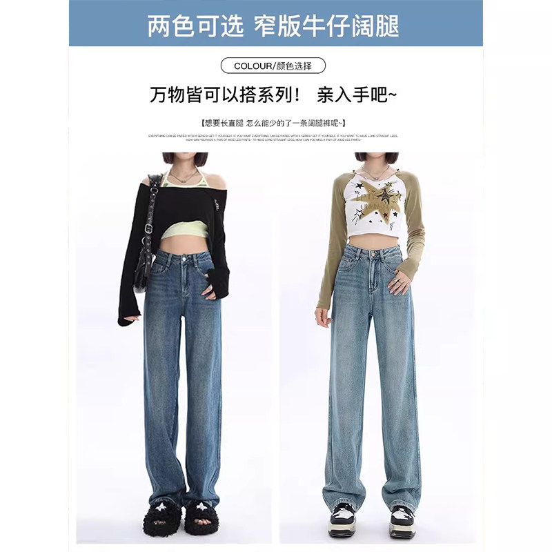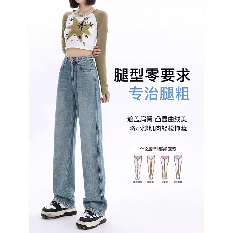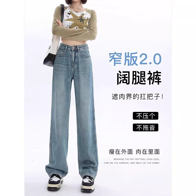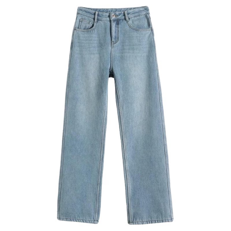 拉夏贝尔浅色窄版直筒牛仔裤女春秋2026新款高腰显瘦小个子阔腿裤