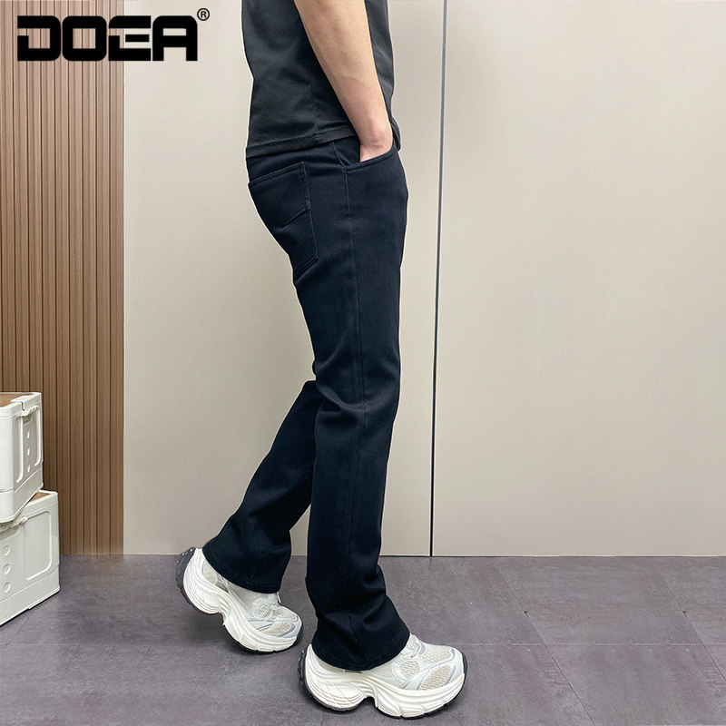 美式风直筒牛仔裤男加绒加厚抽绳长裤2026年春季新款黑色宽松裤子