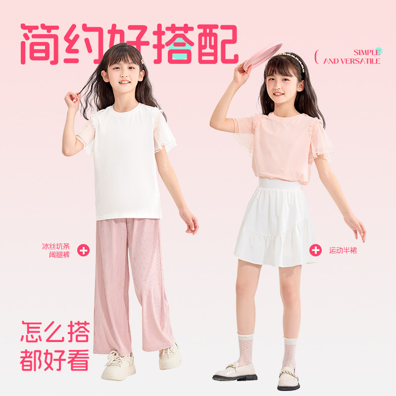 真维斯女童夏季套装2026新款韩系高级感穿搭紫色短袖t恤儿童夏装