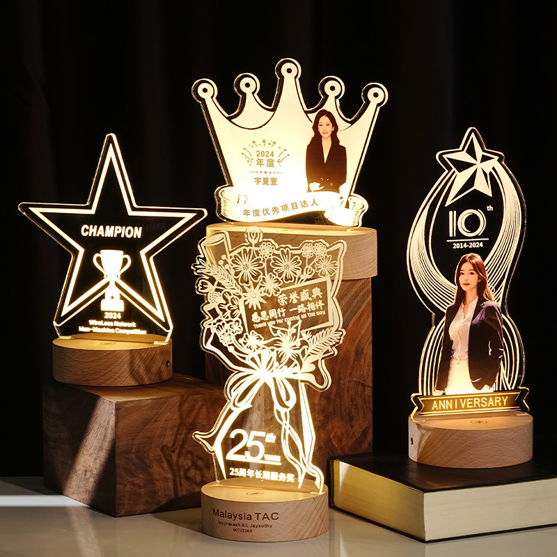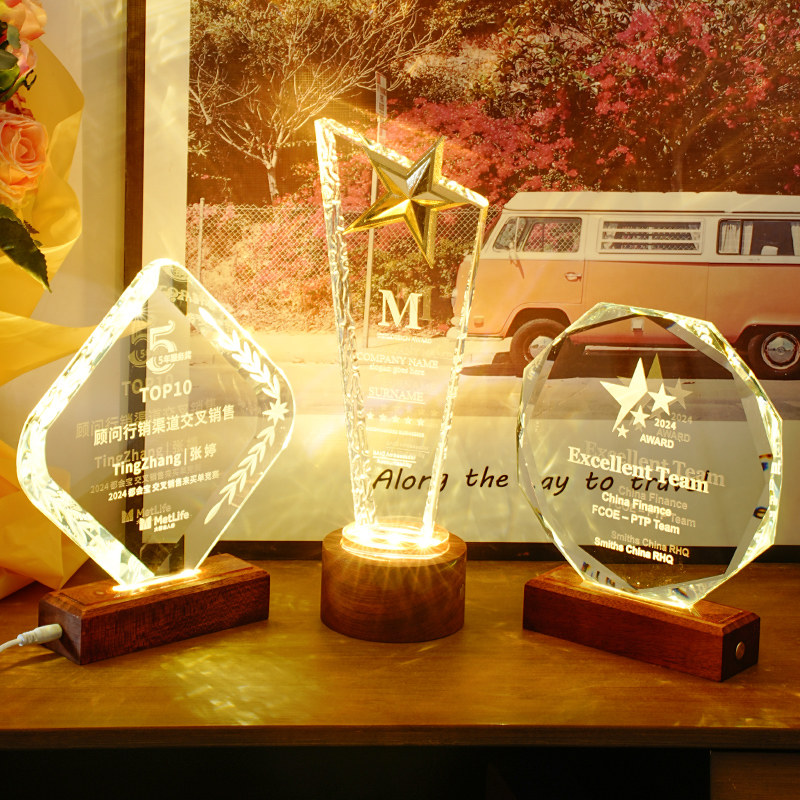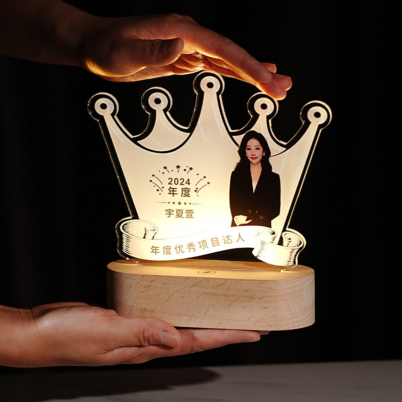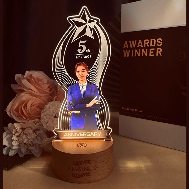 311线报网描述:发光夜灯奖杯送老师奖牌优秀员工周年纪念奖