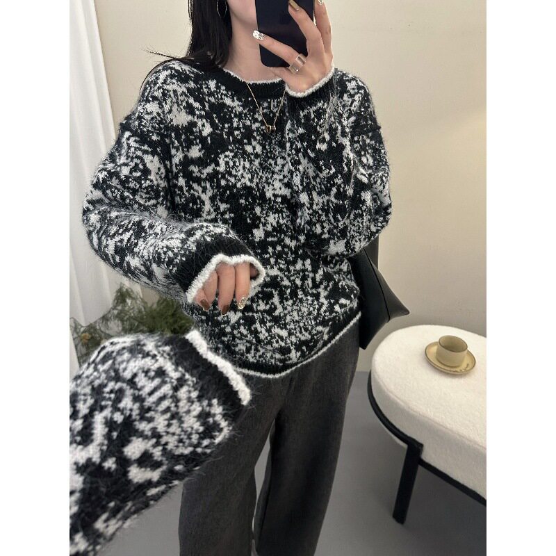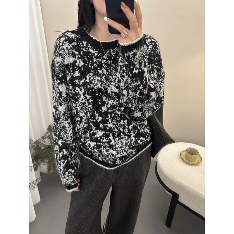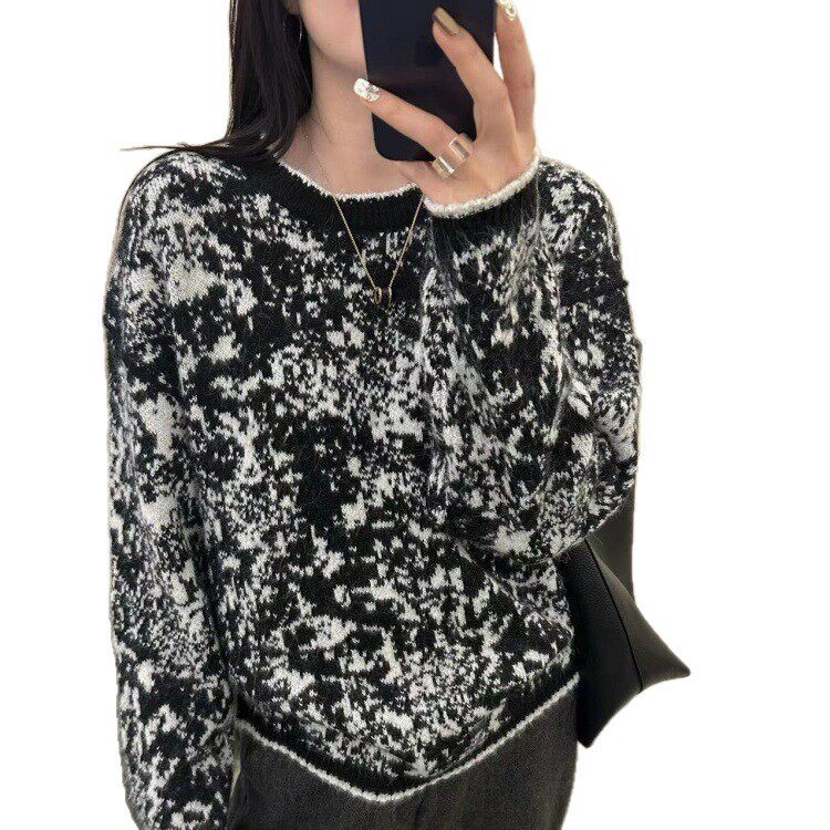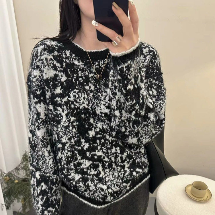 冬季女士拼色加厚圆领毛衣女款2025新款秋冬爆款内搭可外穿打底衫
