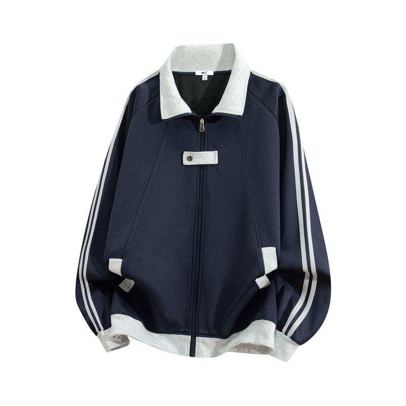 回力春秋季重磅插条撞色开衫卫衣2026新款翻领宽松休闲外套男女款