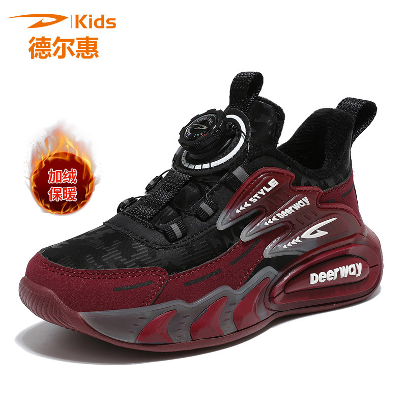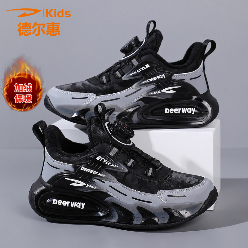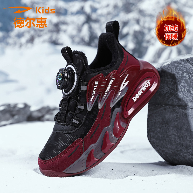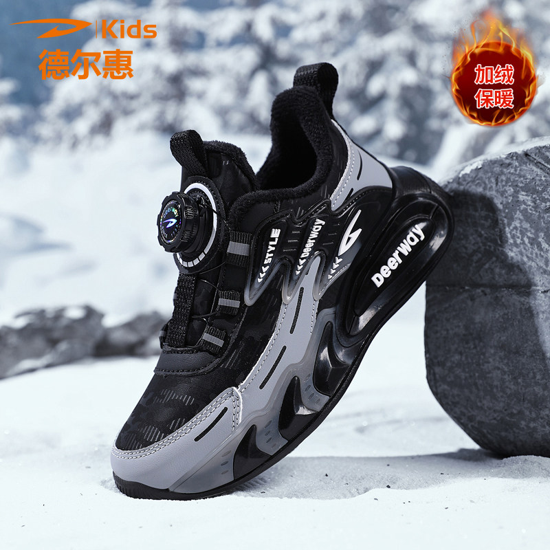 德尔惠男童鞋子秋冬季新款儿童运动鞋中大童加绒皮面防水二棉鞋