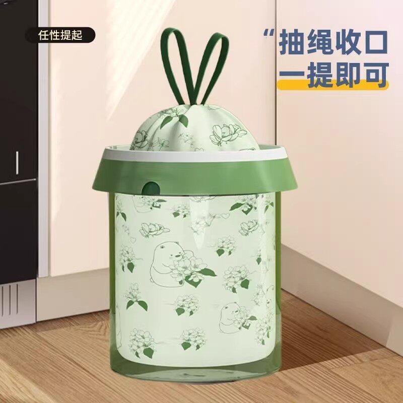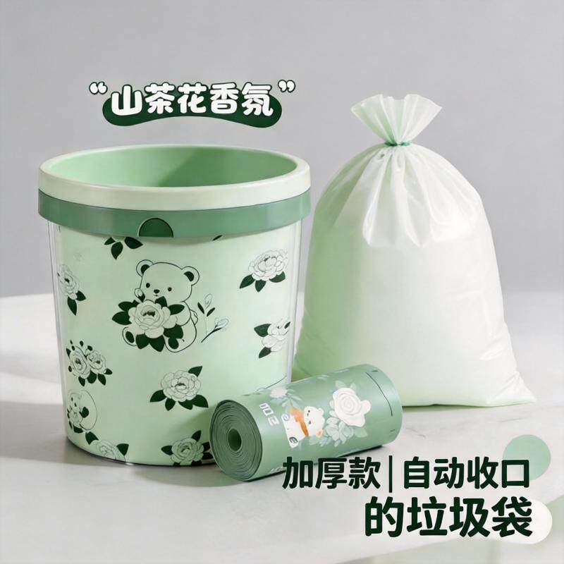 山茶花免撕垃圾袋家用加厚手提式抽绳祛味自动收口塑料袋家用大号