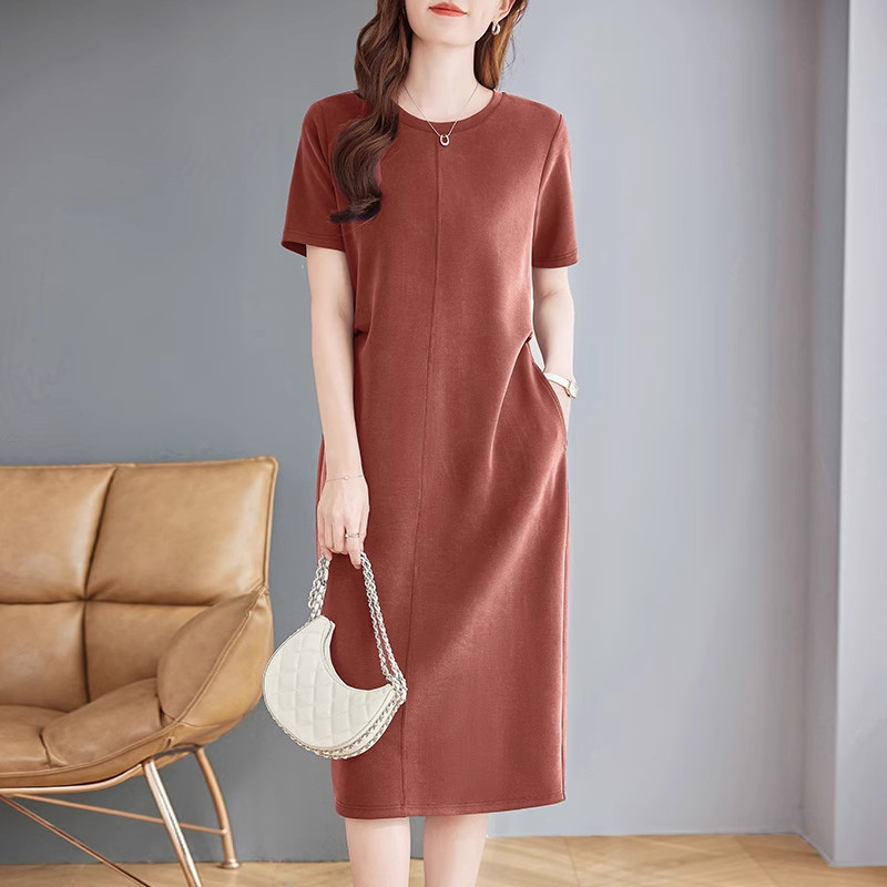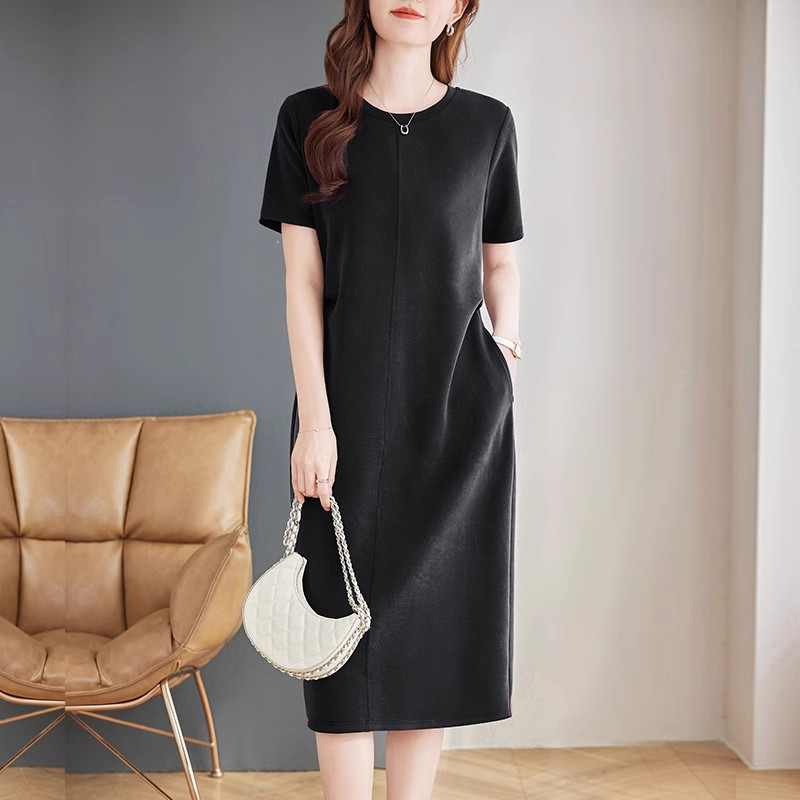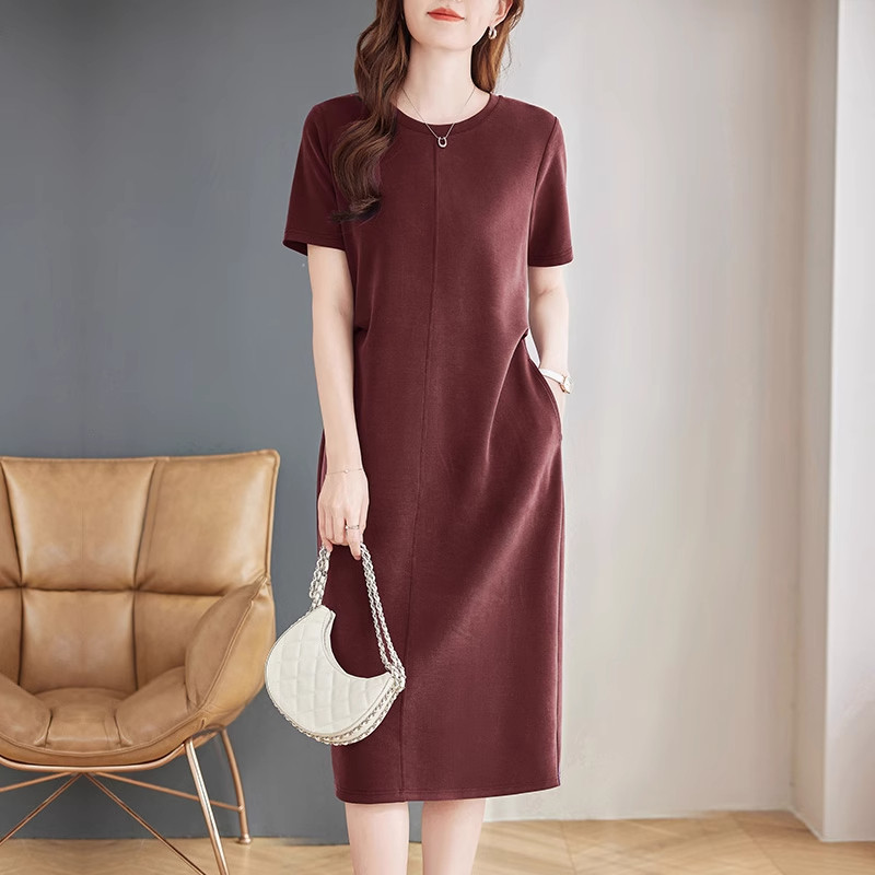紫色短袖连衣裙夏季新款大码女装洋气胖mm宽松显瘦直筒中长款裙子
