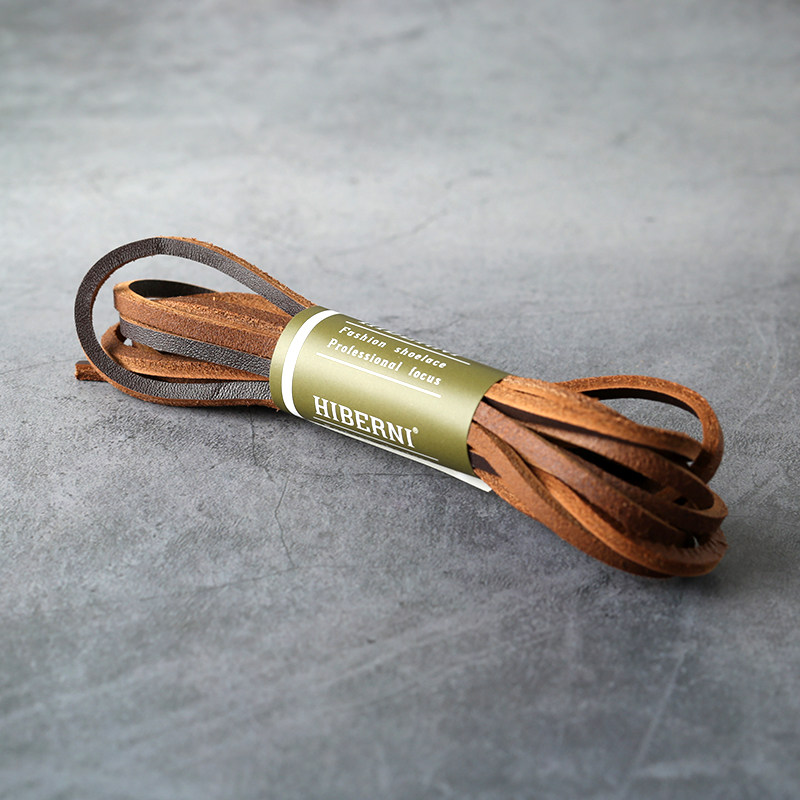 HIBERNI品牌原装头层真皮方扁形深棕色牛皮鞋带马丁靴工装靴鞋绳