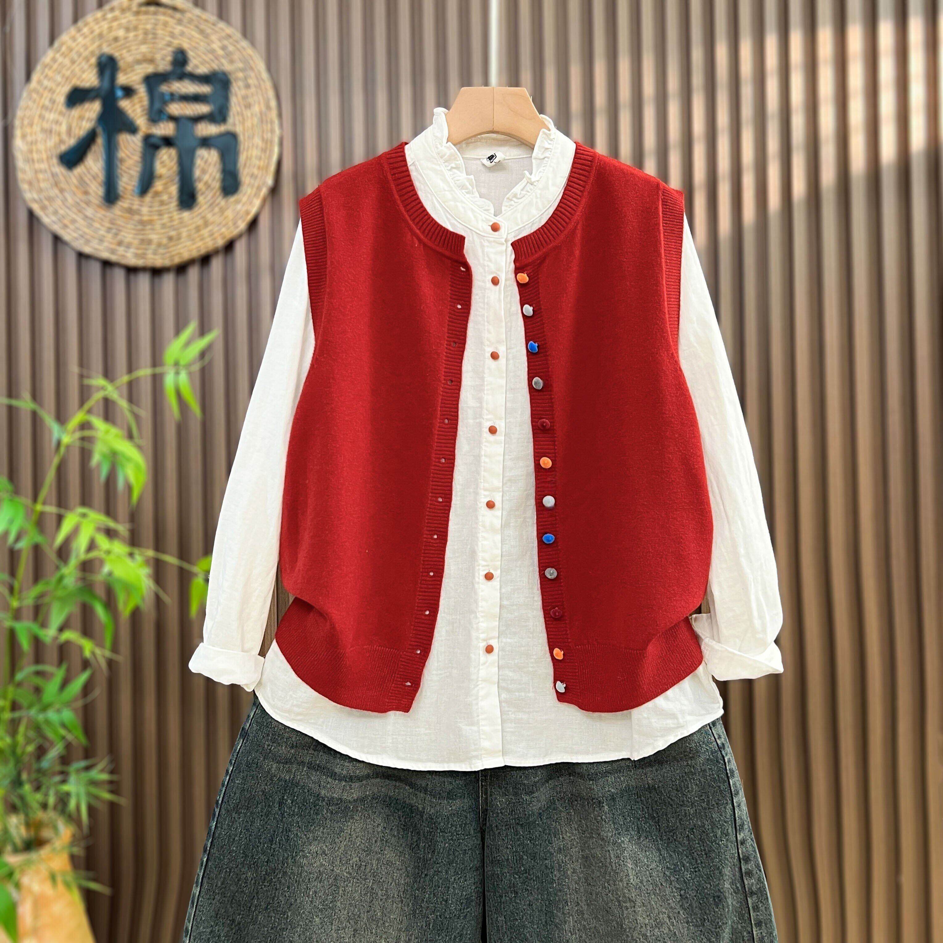 大码2026新款春秋针织棉马甲女款叠穿宽松毛衣背心马夹坎肩外搭