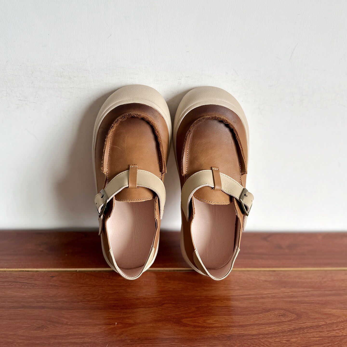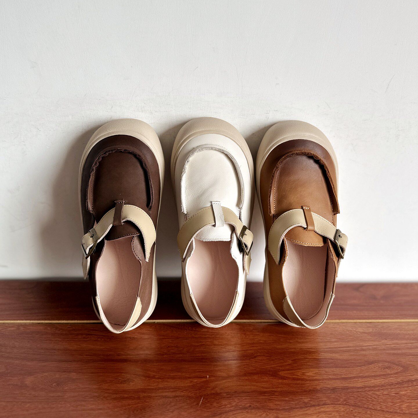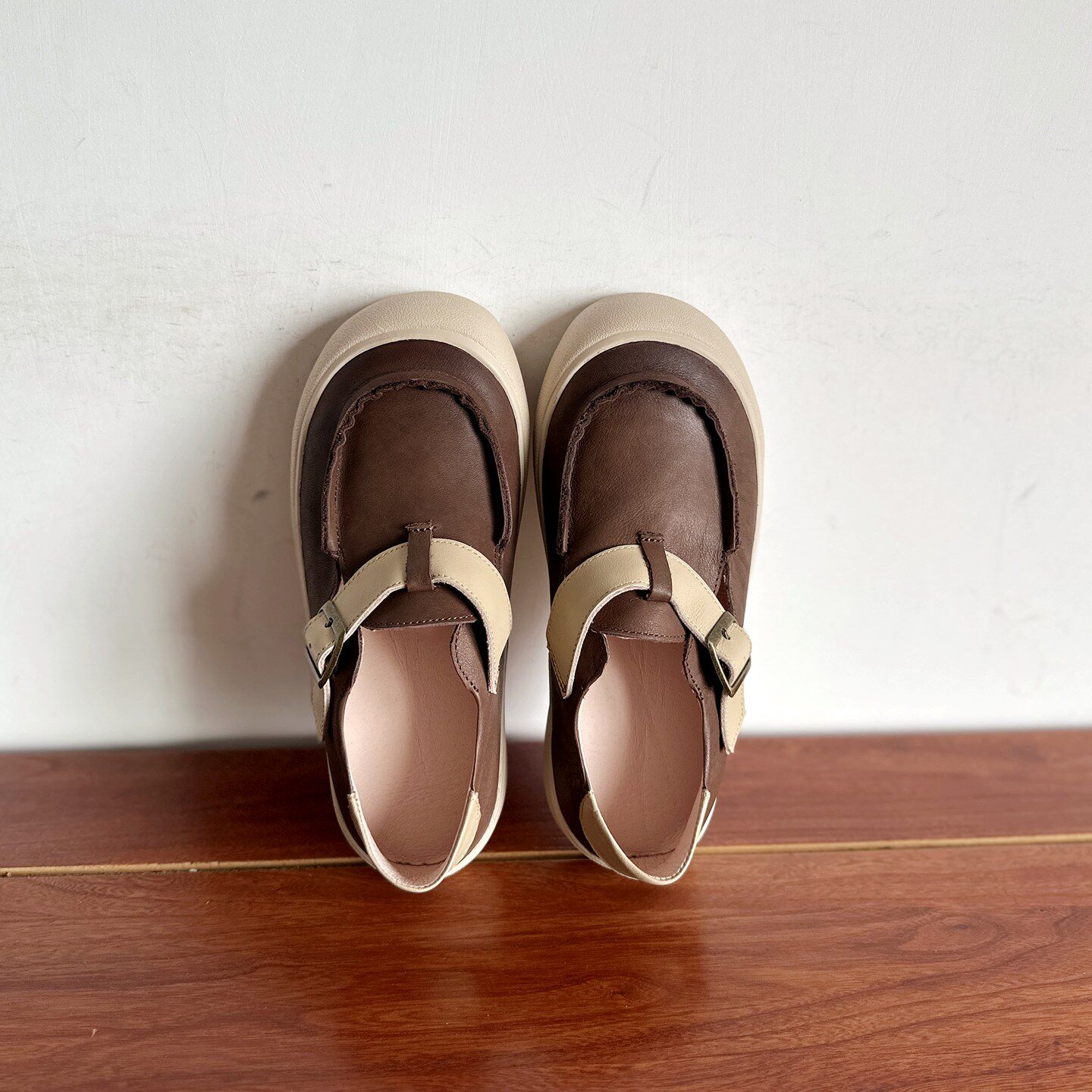 【烁掌柜】自制款复古文艺范手工真皮女鞋头层牛皮松糕厚底勃肯鞋