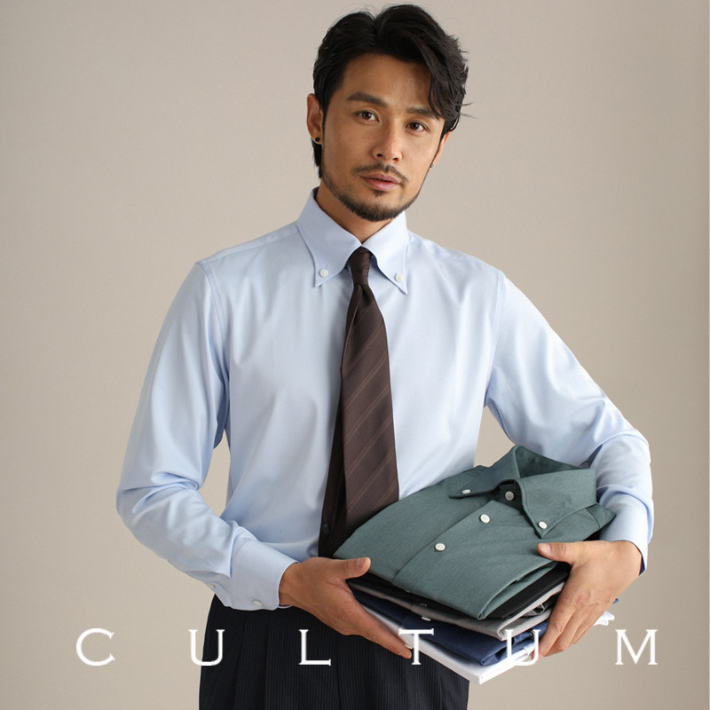 CULTUM意式复古大尖领纽扣领衬衫男士长袖免烫易打理商务休闲衬衣