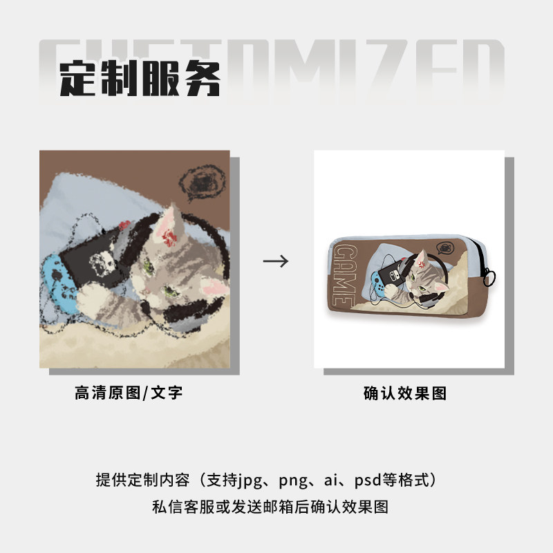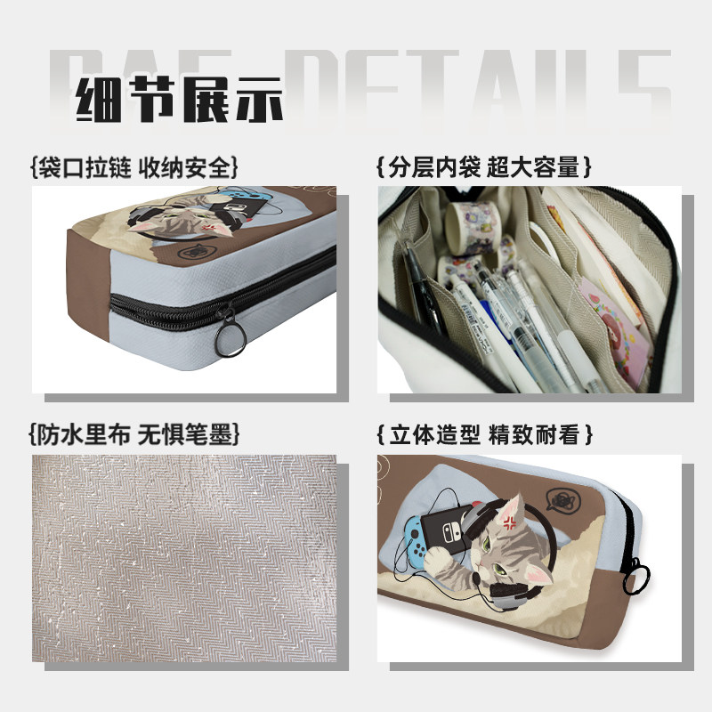 奥松原创网瘾小猫黄色文具笔袋小众不撞款二次元帆布可爱韩系高颜值ins风初中女生小学生初中生一年级幼儿园