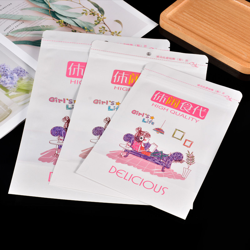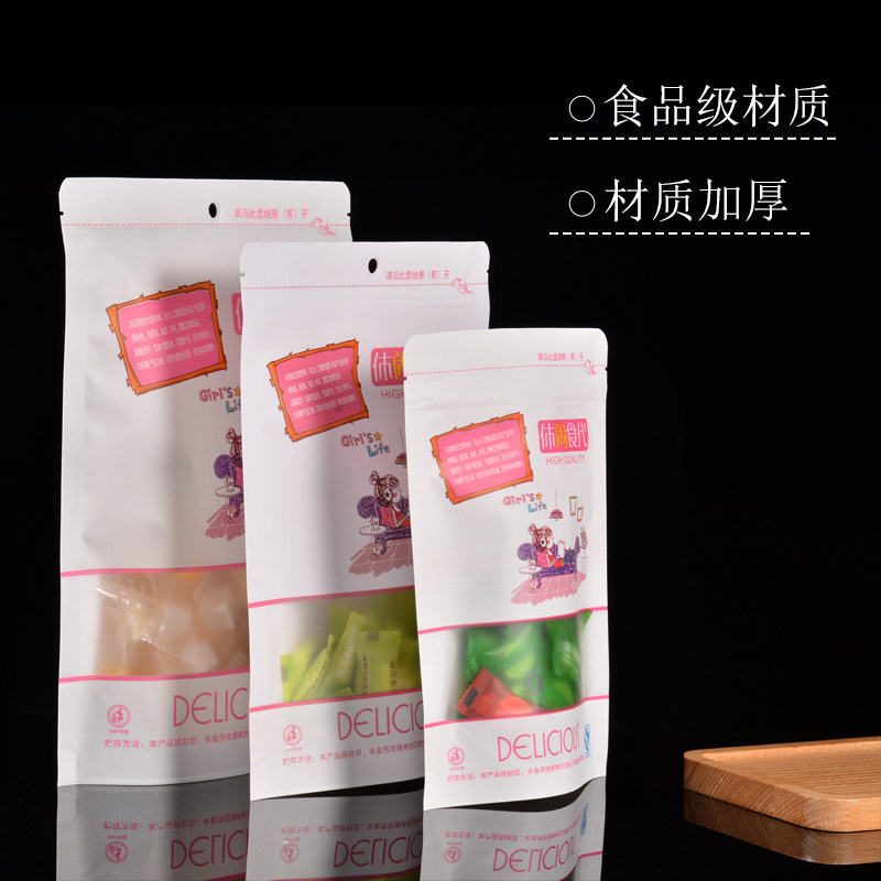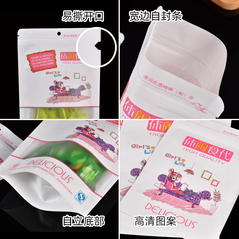 白色开窗牛皮纸自封袋休闲食品包装袋坚果密封袋零食分装封口袋子