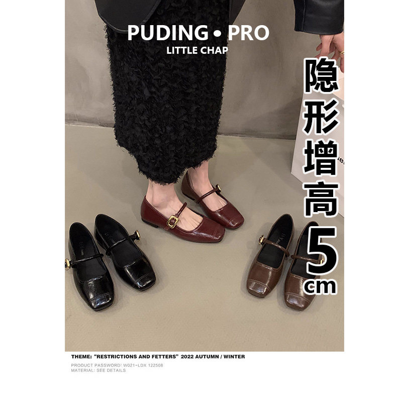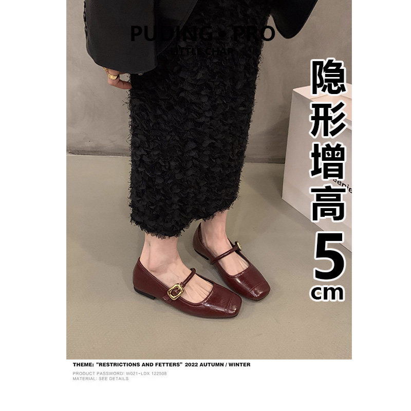 小个子内增高5cm小皮鞋女2026新款春秋季一字扣真皮玛丽珍单鞋子