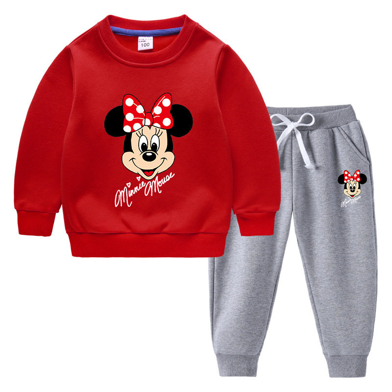 米妮米奇衣服儿童卫衣套装秋冬季新款女童加绒加厚保暖冬装两件套
