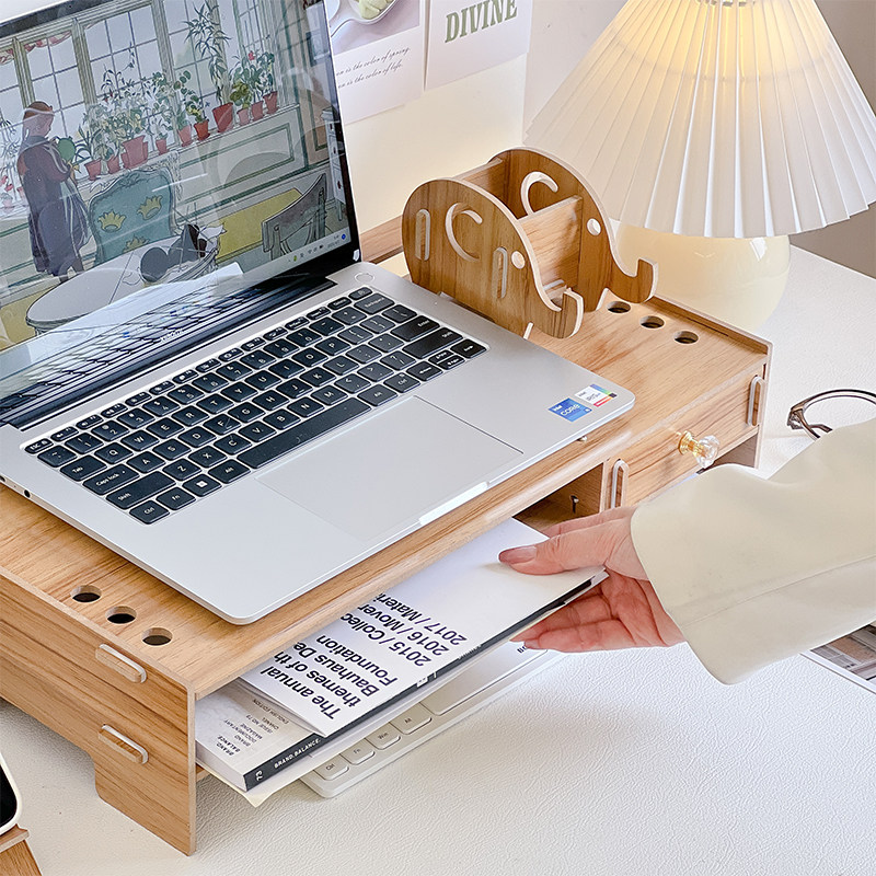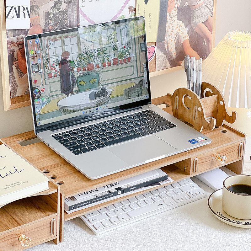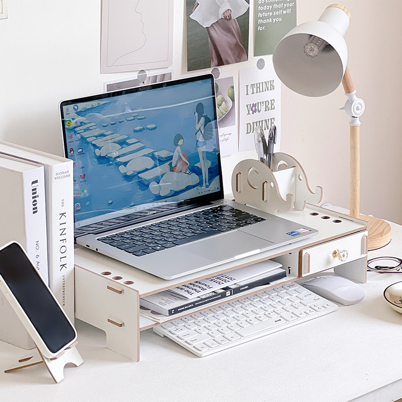 17寸笔记本电脑支架增高型白色木质散热托架桌面键盘收纳置物架子