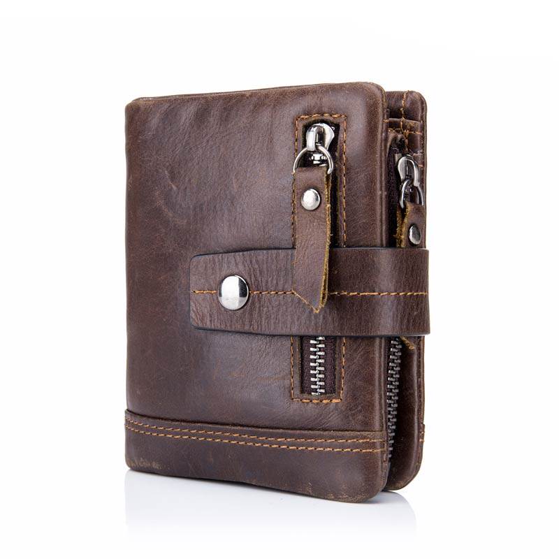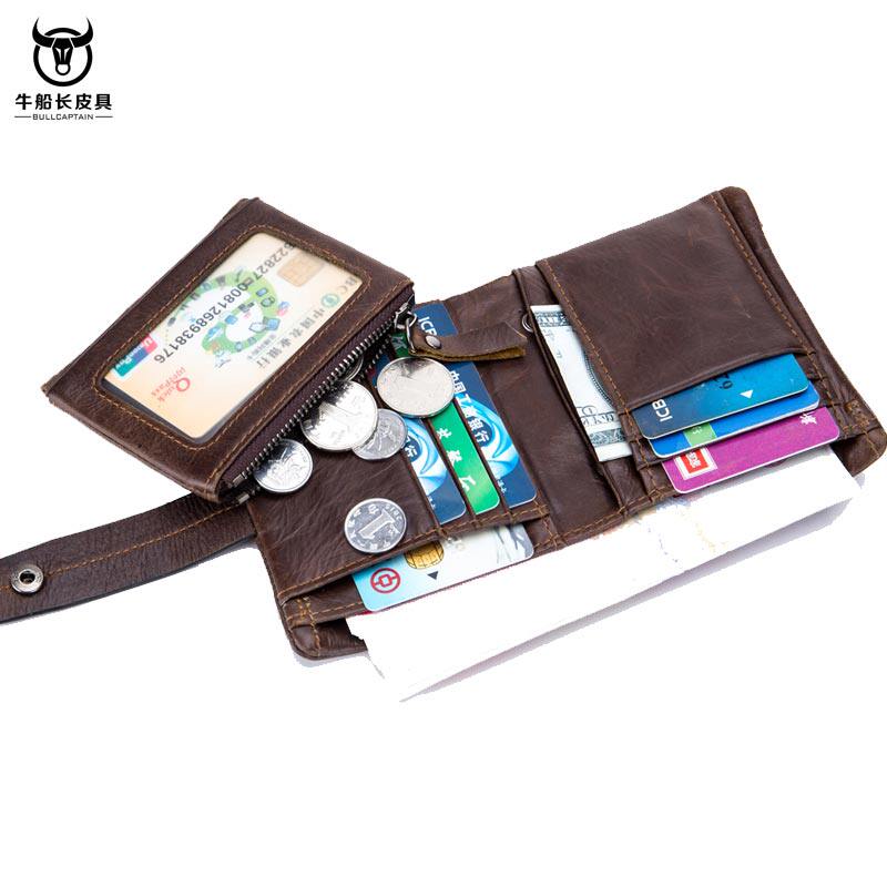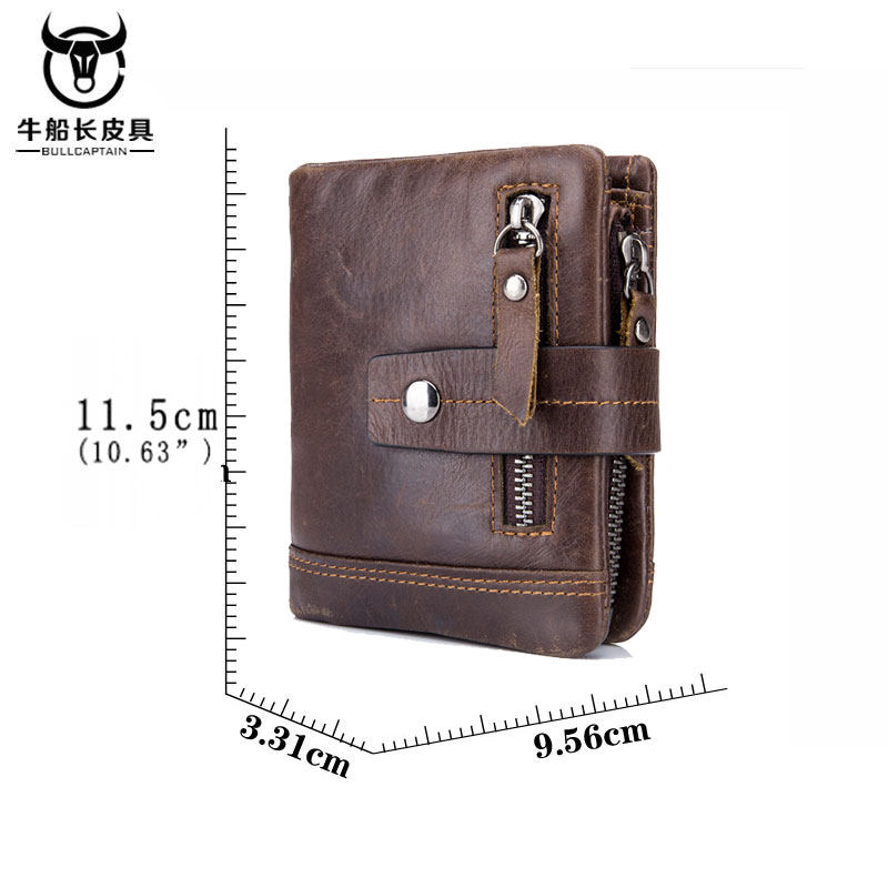 牛船长青年真皮钱包男竖款搭扣牛皮短款多功能软皮零钱折叠钱夹