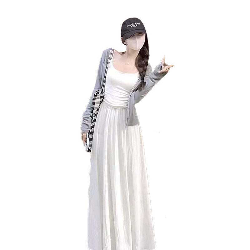 法式白色吊带连衣裙子女2026新款气质高级感早春穿搭套装内搭长裙