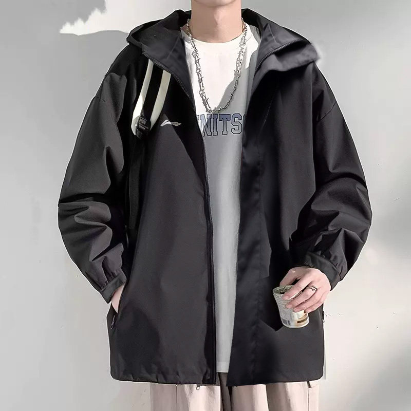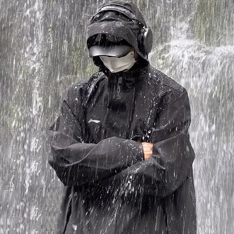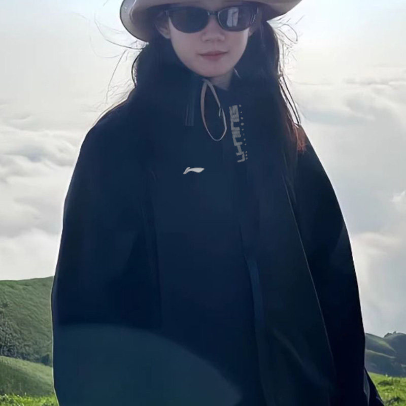 李宁黑色外套2025秋季薄款男款防风防泼水连帽冲锋衣休闲户外时尚