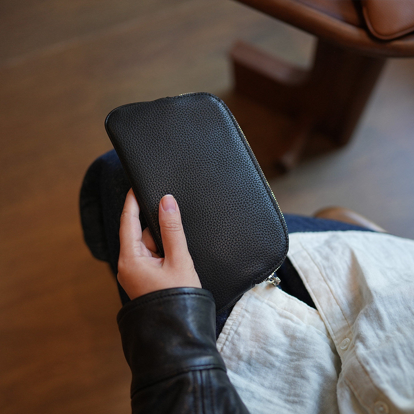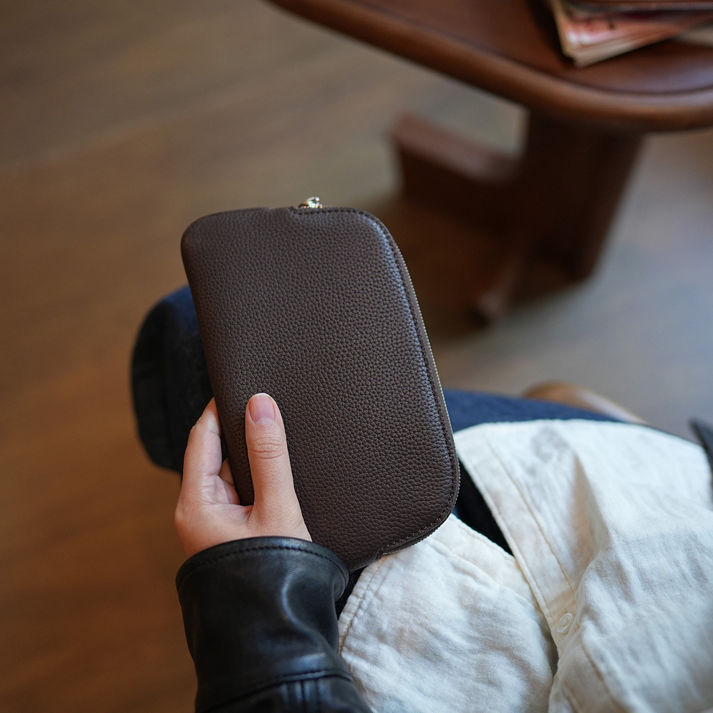 鹿小姐软糯头层牛皮简约高级感长款钱夹真皮手机收纳包手拿钱包
