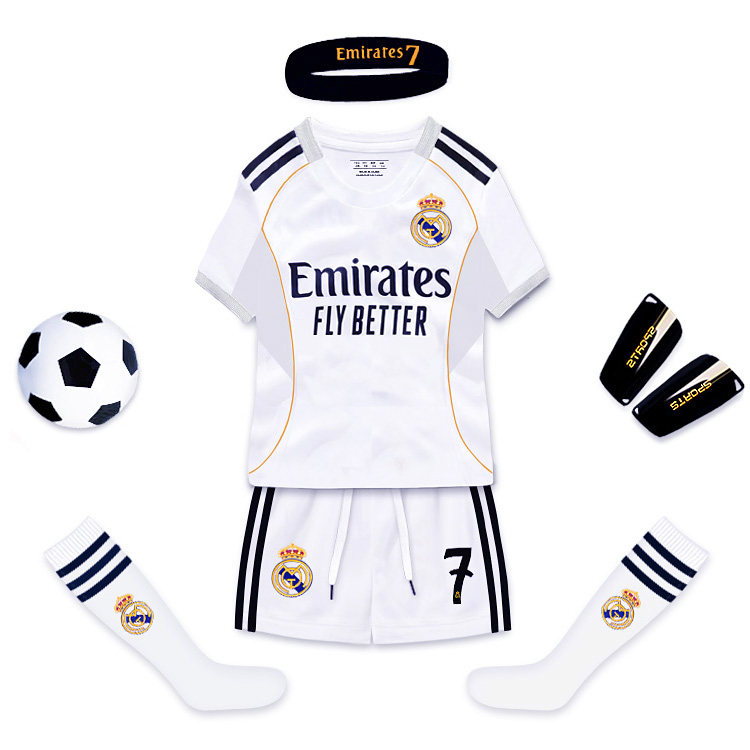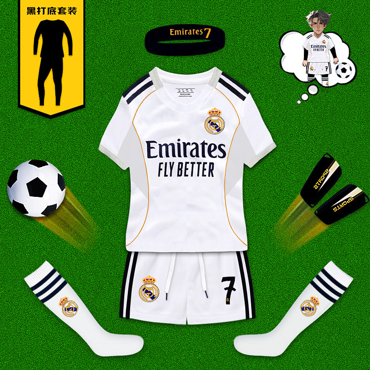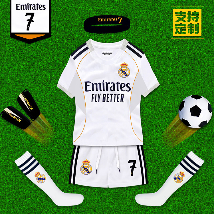 儿童足球服套装夏2526皇马C罗7短袖运动球衣男女童定制比赛训练服