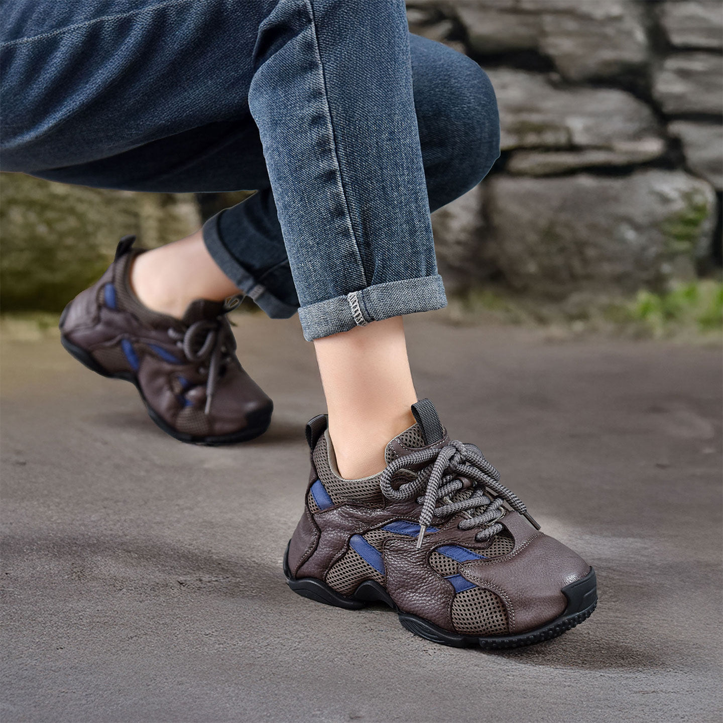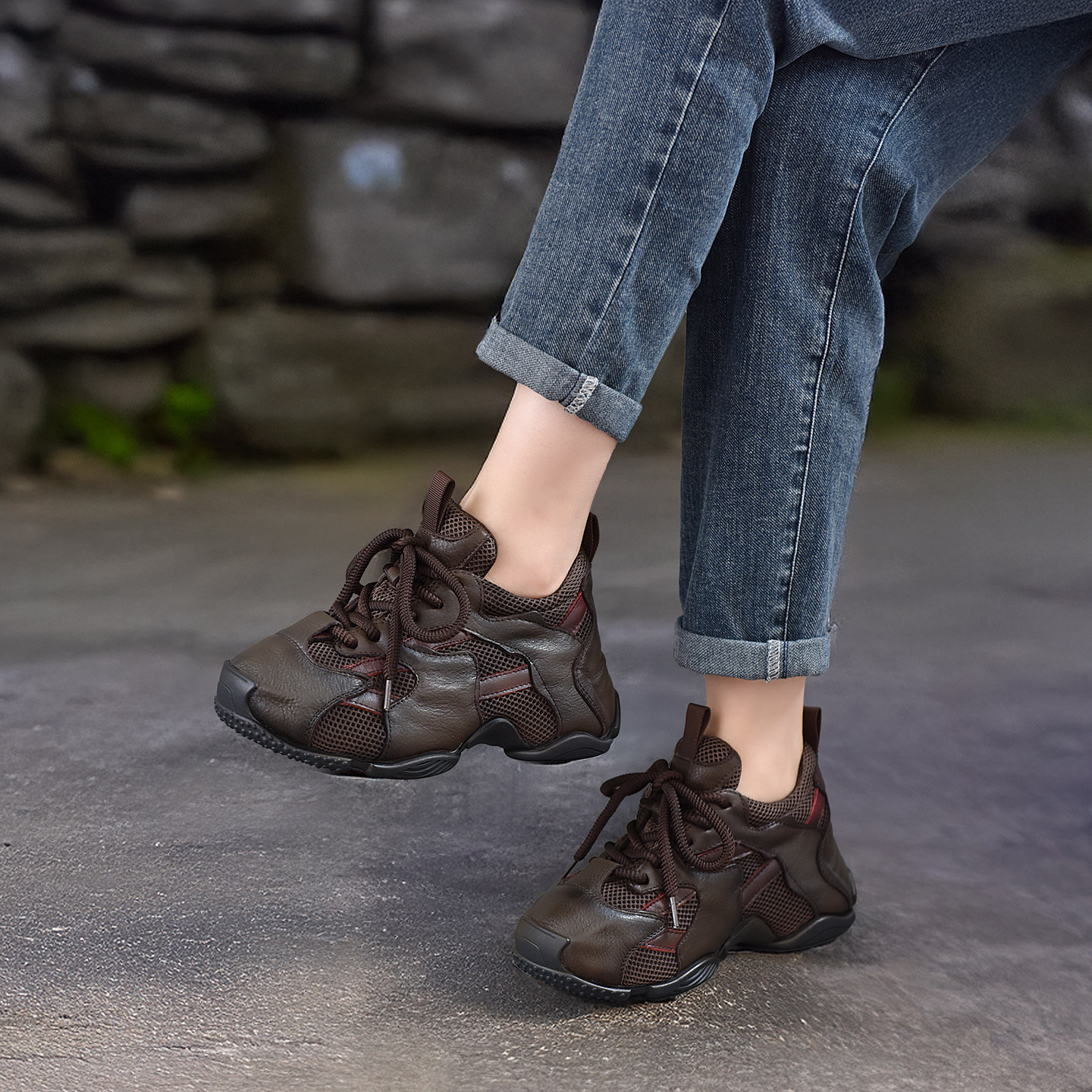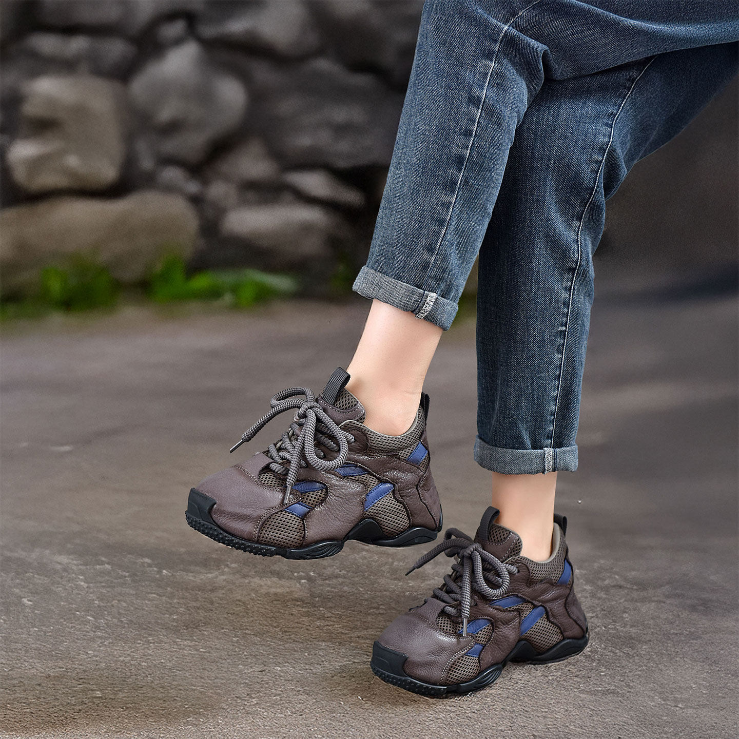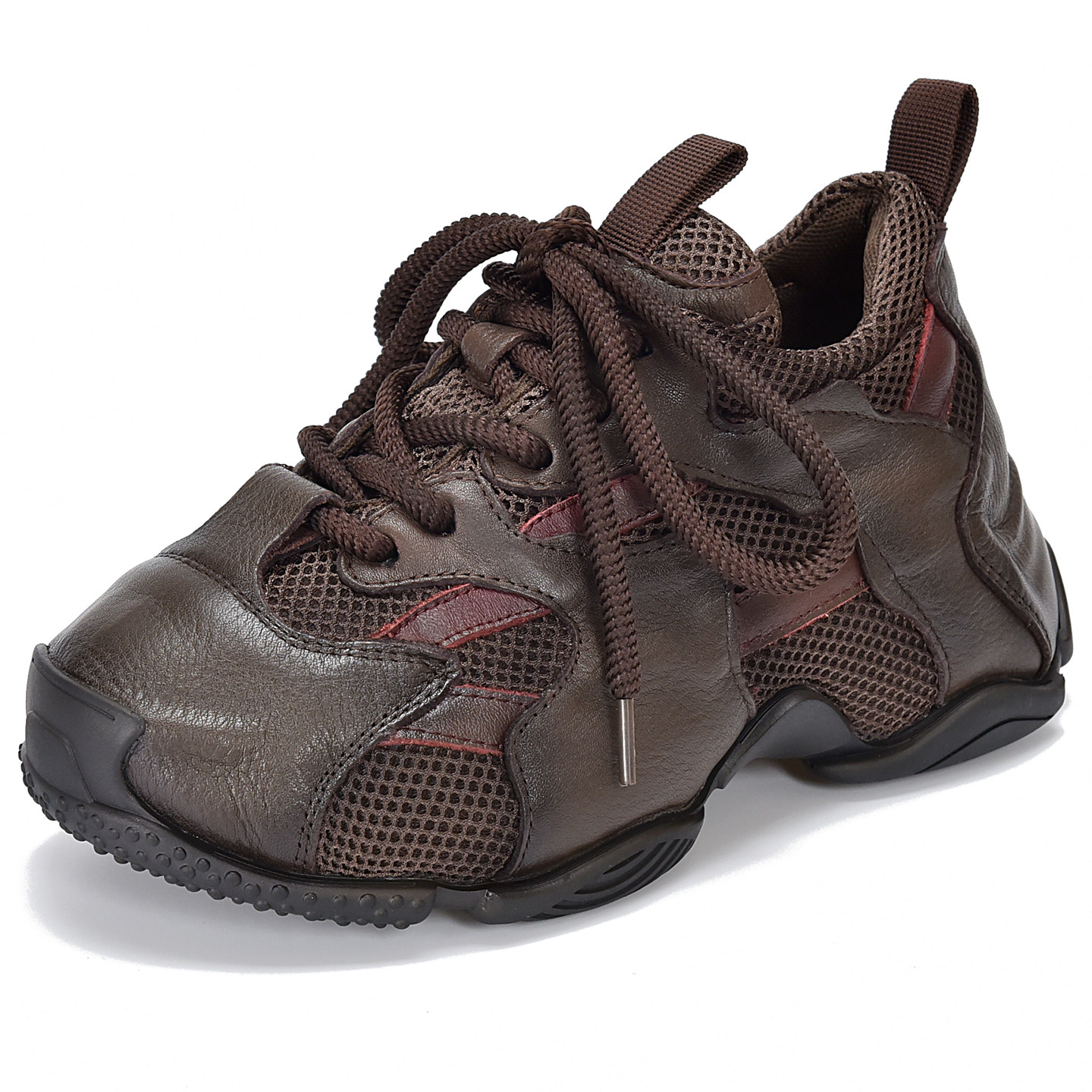 四起哥2026春秋新款头层牛皮厚底老爹鞋女手工真皮轻奢运动鞋女鞋