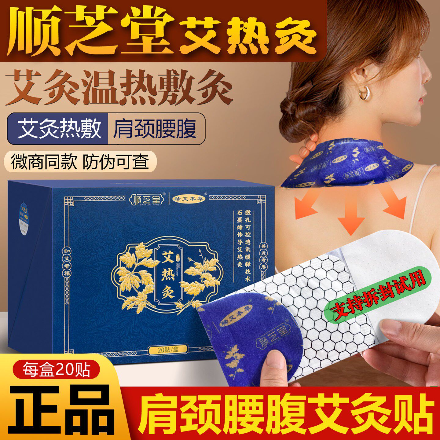 顺芝堂艾热灸贴官方正品热敷贴自发热颈肩腰腹保暖宝宝艾草艾灸贴