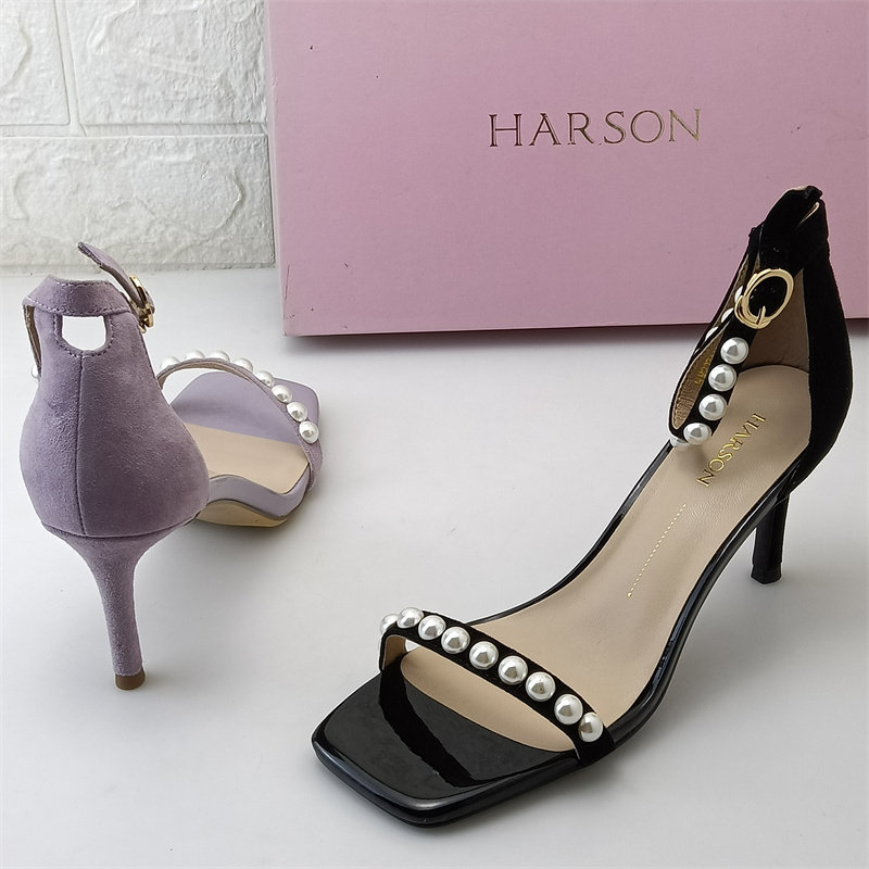 哈森品牌女鞋正品撤柜断码处理夏款真皮时装凉鞋羊反绒皮细高跟鞋