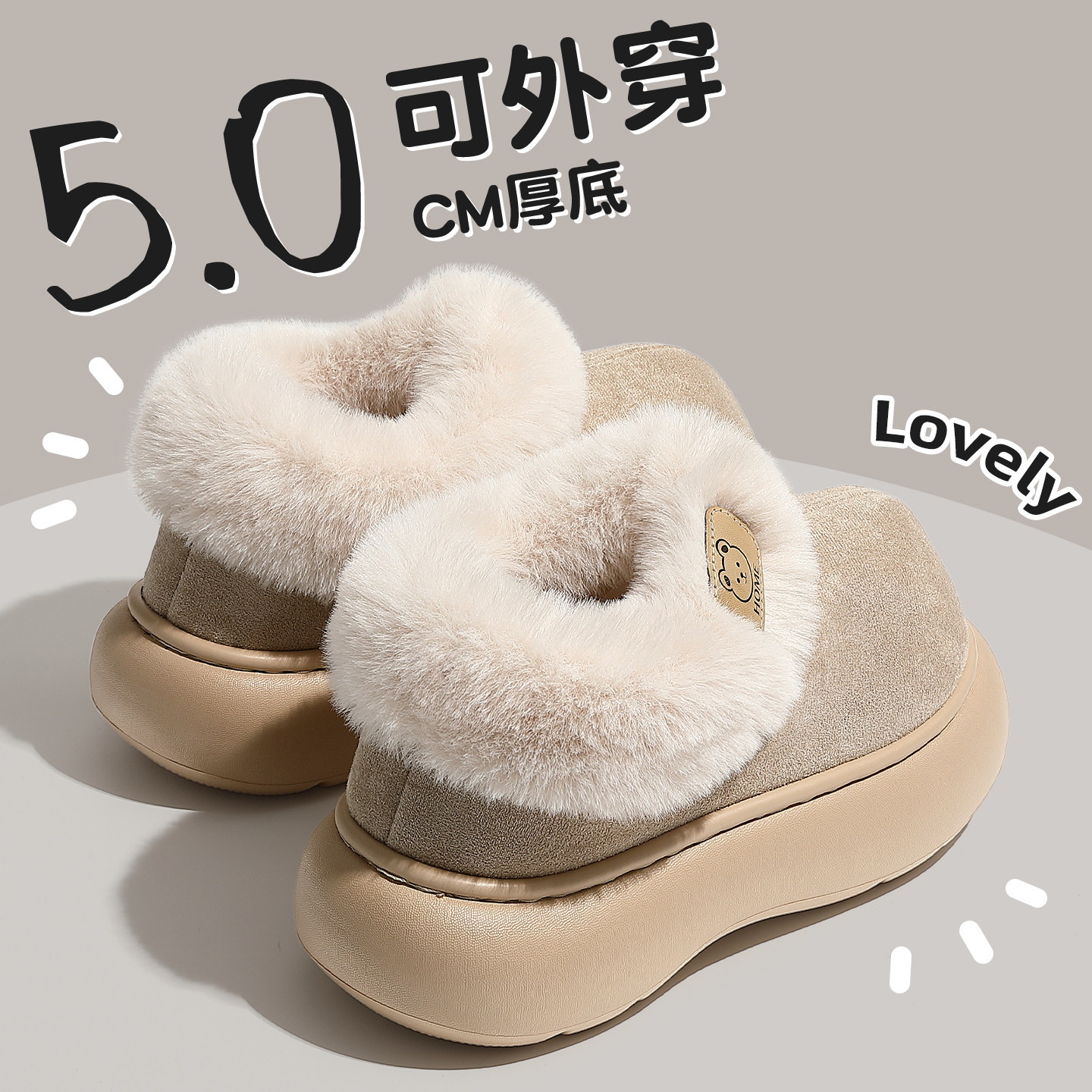厚底棉鞋女款冬季2026新款外穿包跟毛毛棉拖鞋保暖加绒加厚雪地靴