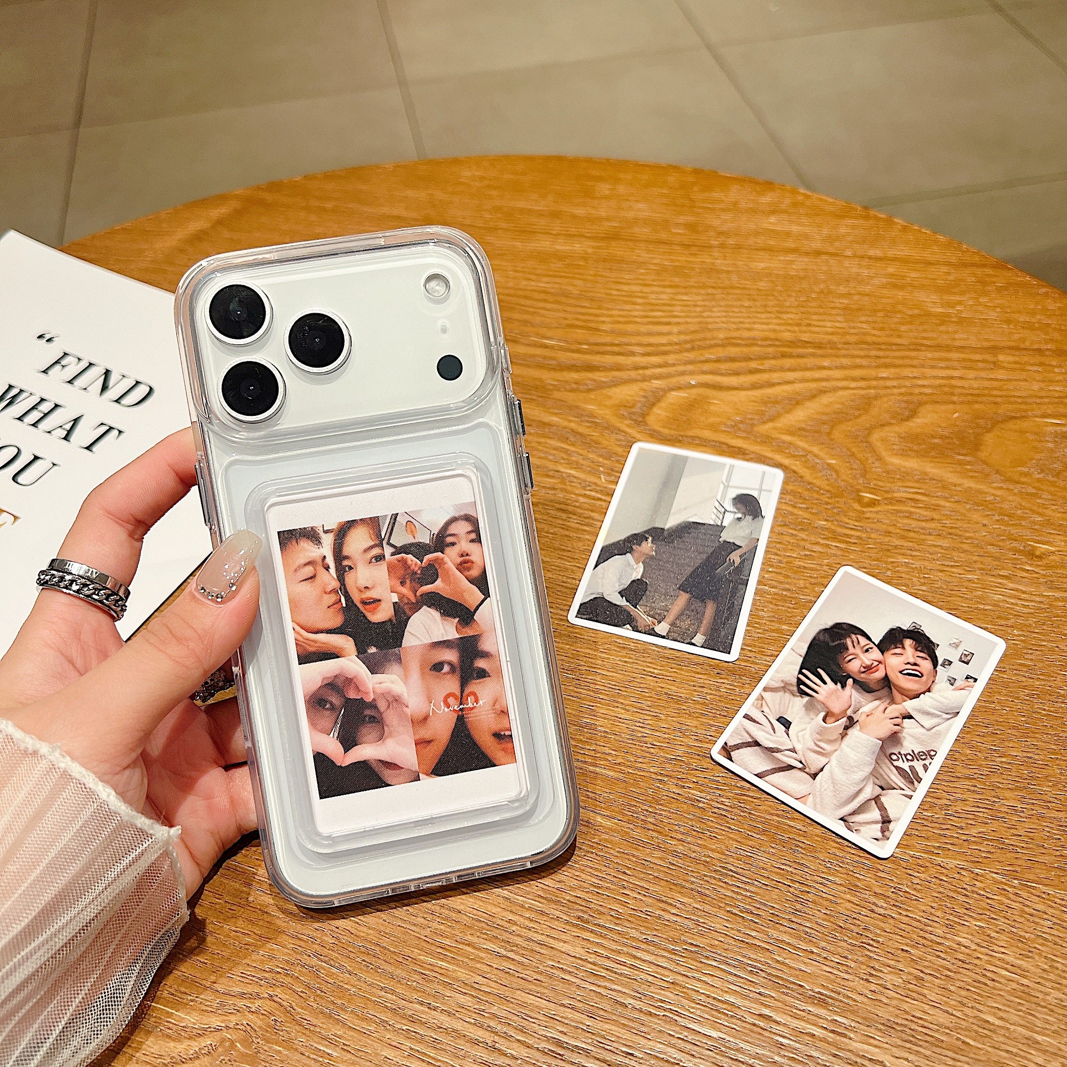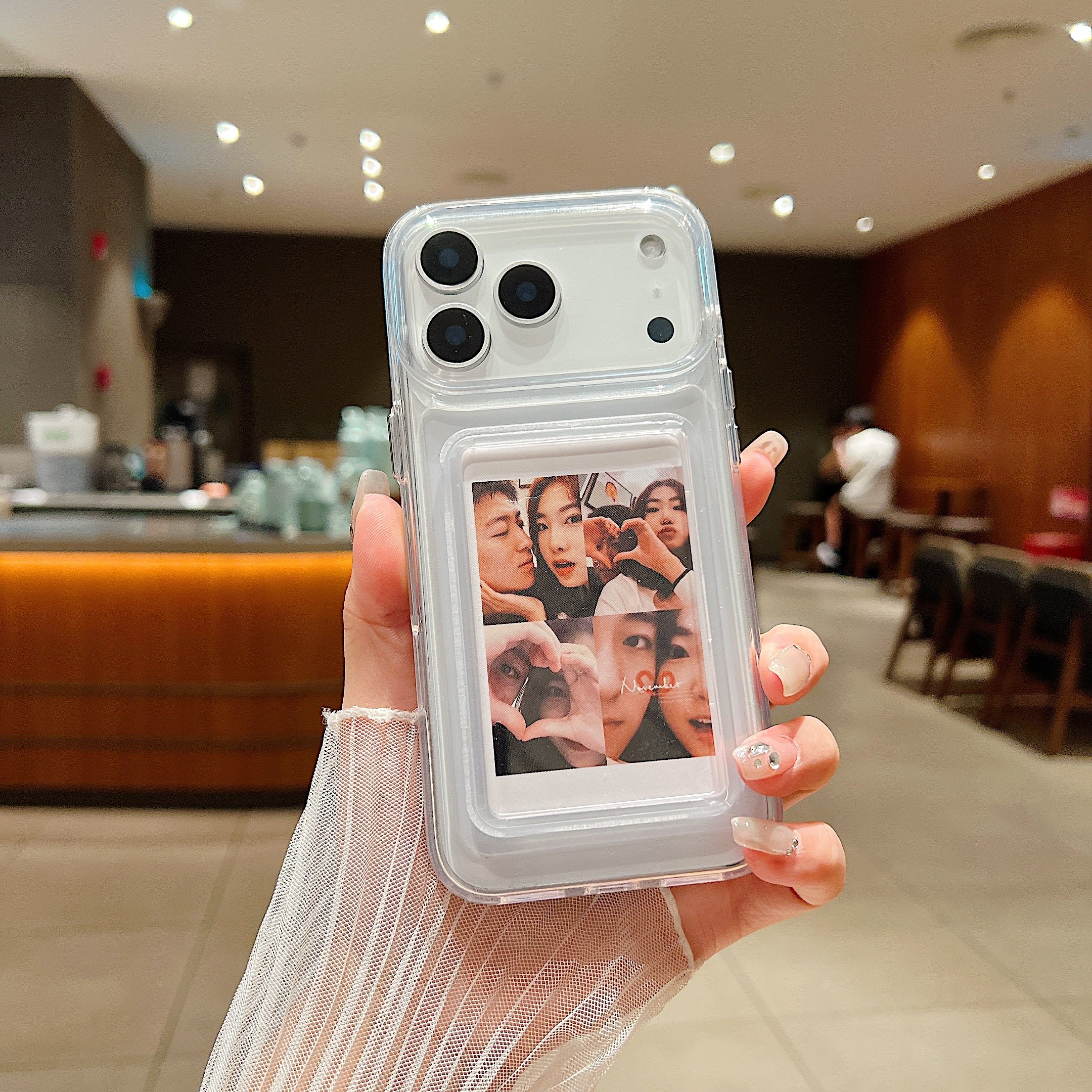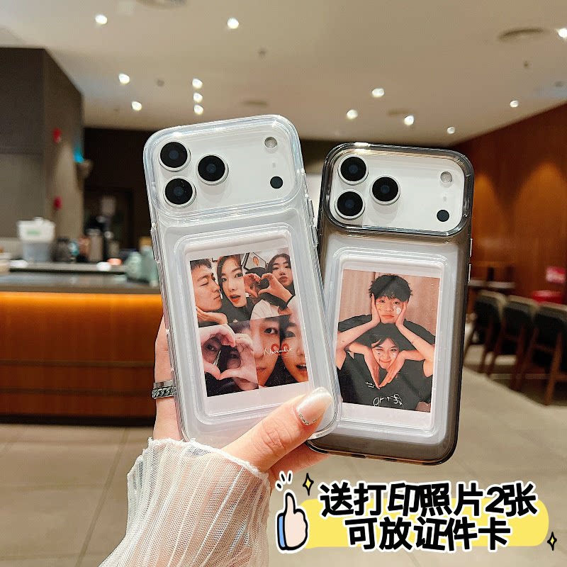 送定制照片2张适用于新款iPhone17Air拍立得手机壳16Promax高级透明硅胶壳苹果15情侣款保护壳相片卡包防摔壳